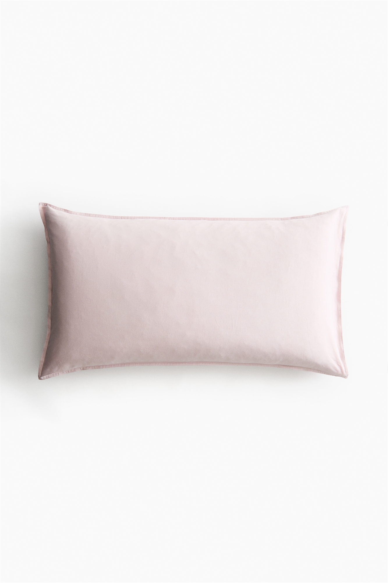 Наволочка из стираного льна и вискозы с количеством нитей 124, мягкая и комфортная для сна. Края с двойной строчкой и отверстие-конверт.