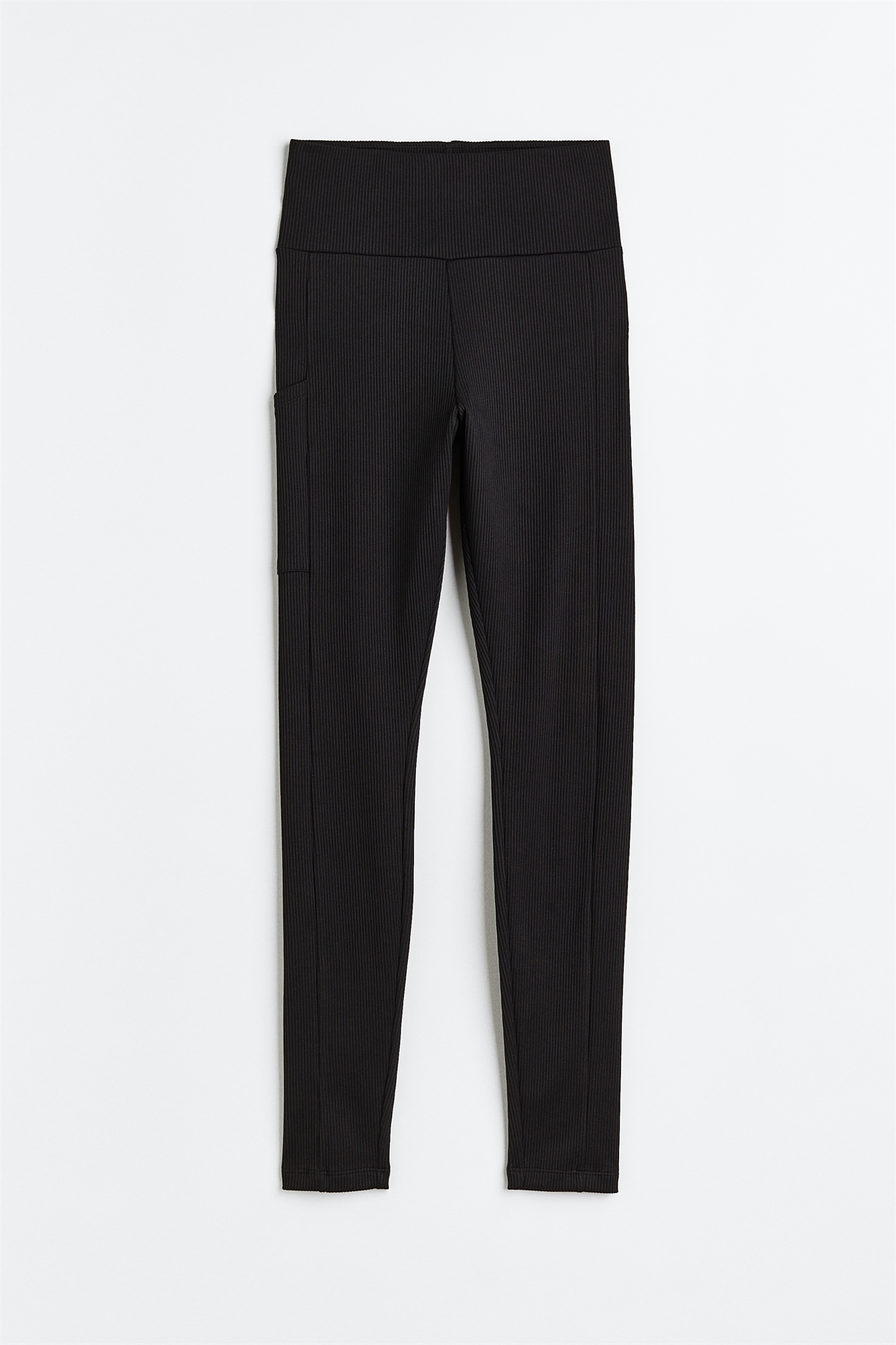 Леггинсы с высокой талией из джерси с широким поясом и открытым карманом на одной штанине.