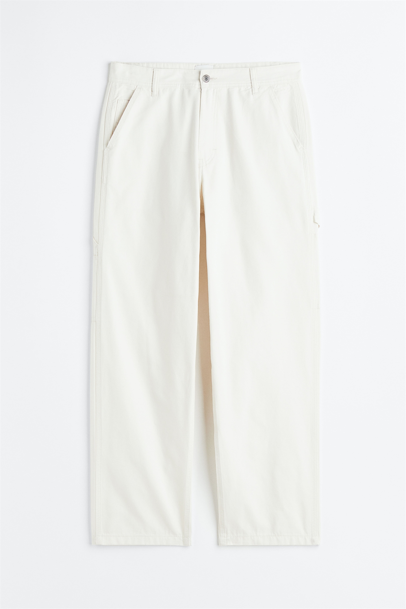 Рабочие брюки из прочного хлопкового холста. Расслабленный крой с обычной талией, ширинка на молнии и пуговице и прямые ноги. Боковые карманы, карман для монет, задние карманы и карманы на ногах. Петля для молотка с одной стороны.