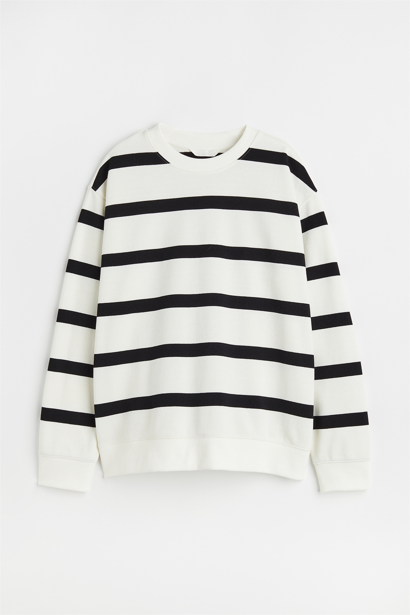 Топ из легкой толстовки из смеси хлопка с круглым вырезом, спущенными плечами и длинными рукавами. Окантовка по вырезу, манжетам и подолу.