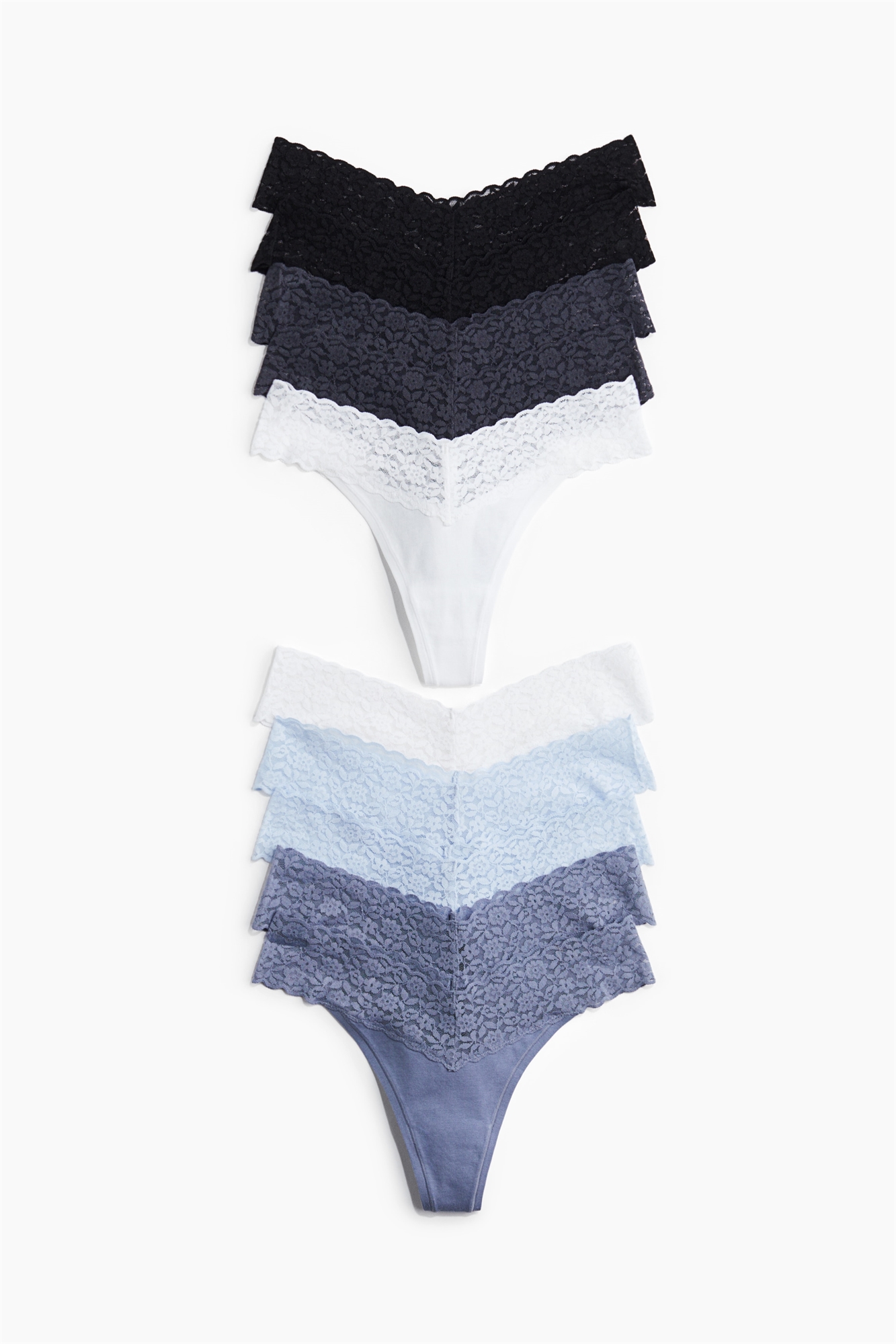 Трусы-стринги из кружева со средней, V-образной талией и ластовицей.