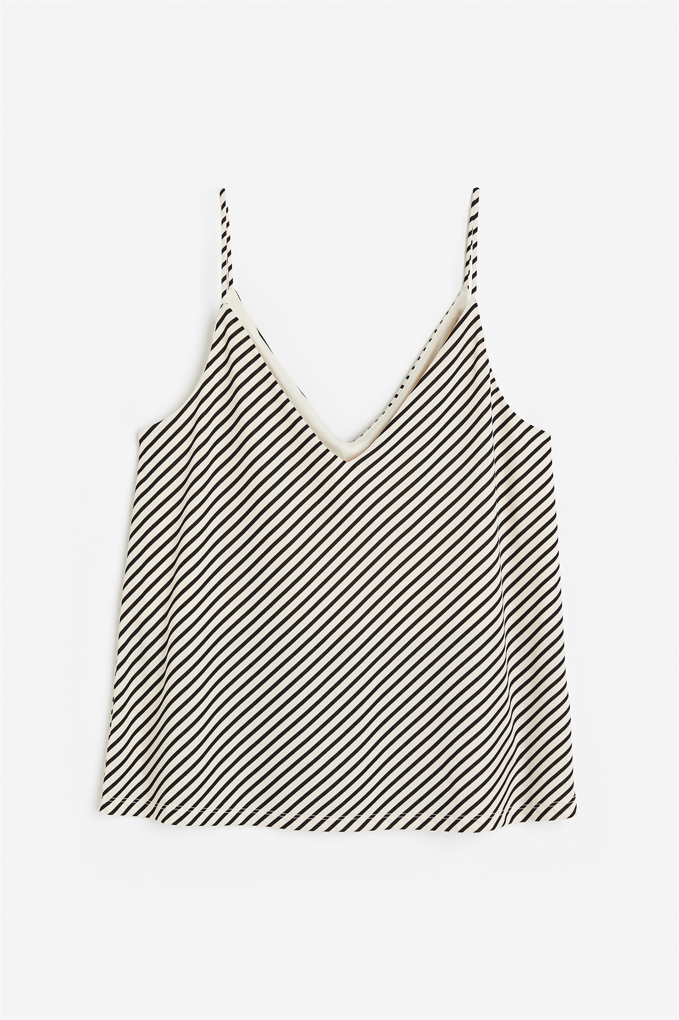 Топ на бретельках из джерси с легким блеском, узкими бретелями и V-образным вырезом спереди и сзади.