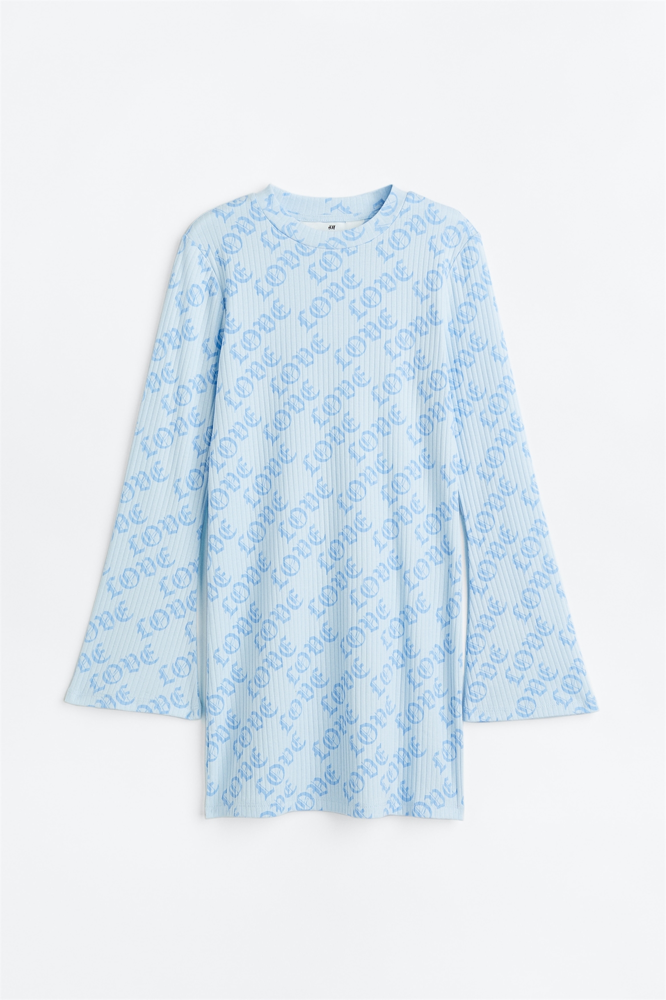 Платье из ребристого хлопкового джерси с круглым вырезом и длинными рукавами-трубами.