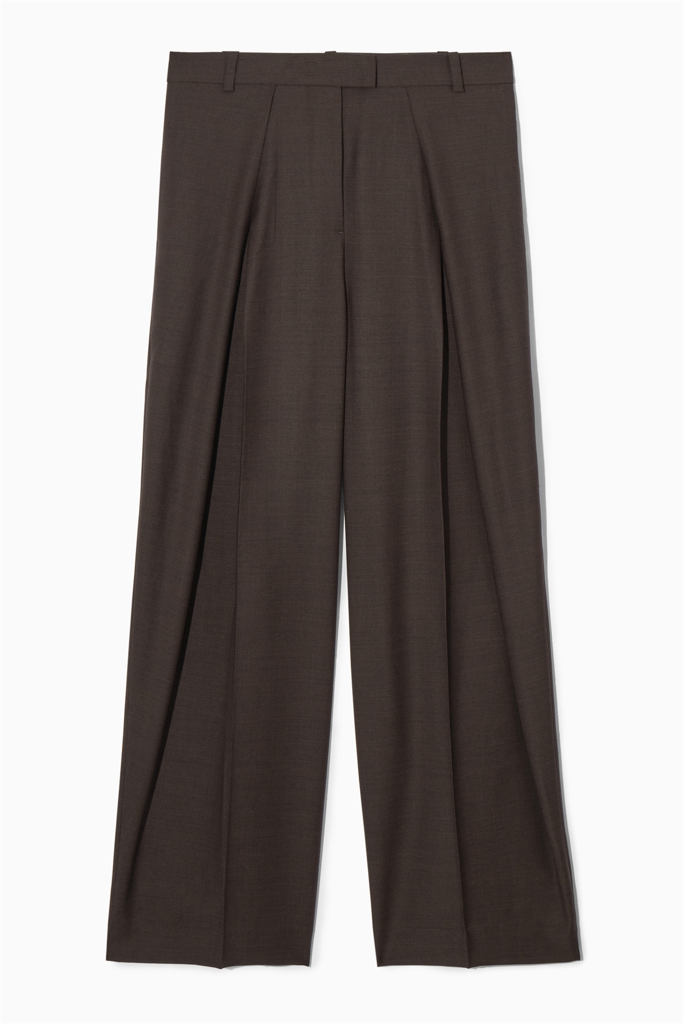 Эти брюки - свидетельство приверженности COS качественному пошиву. Они имеют широкую посадку по всей длине и регулируемую планку на поясе. Они изготовлены из шерсти с небольшим запахом стрейча для комфорта; носите их в комплекте с соответствующим блейзером. Свободный крой Застежка на крючок и планку Боковые прорезные карманы, задний карман 96% шерсти, 4% эластана / Машинная стирка Внутренняя длина штанины размера EU 36 составляет 76,7 см / Модель носит размер EU 36