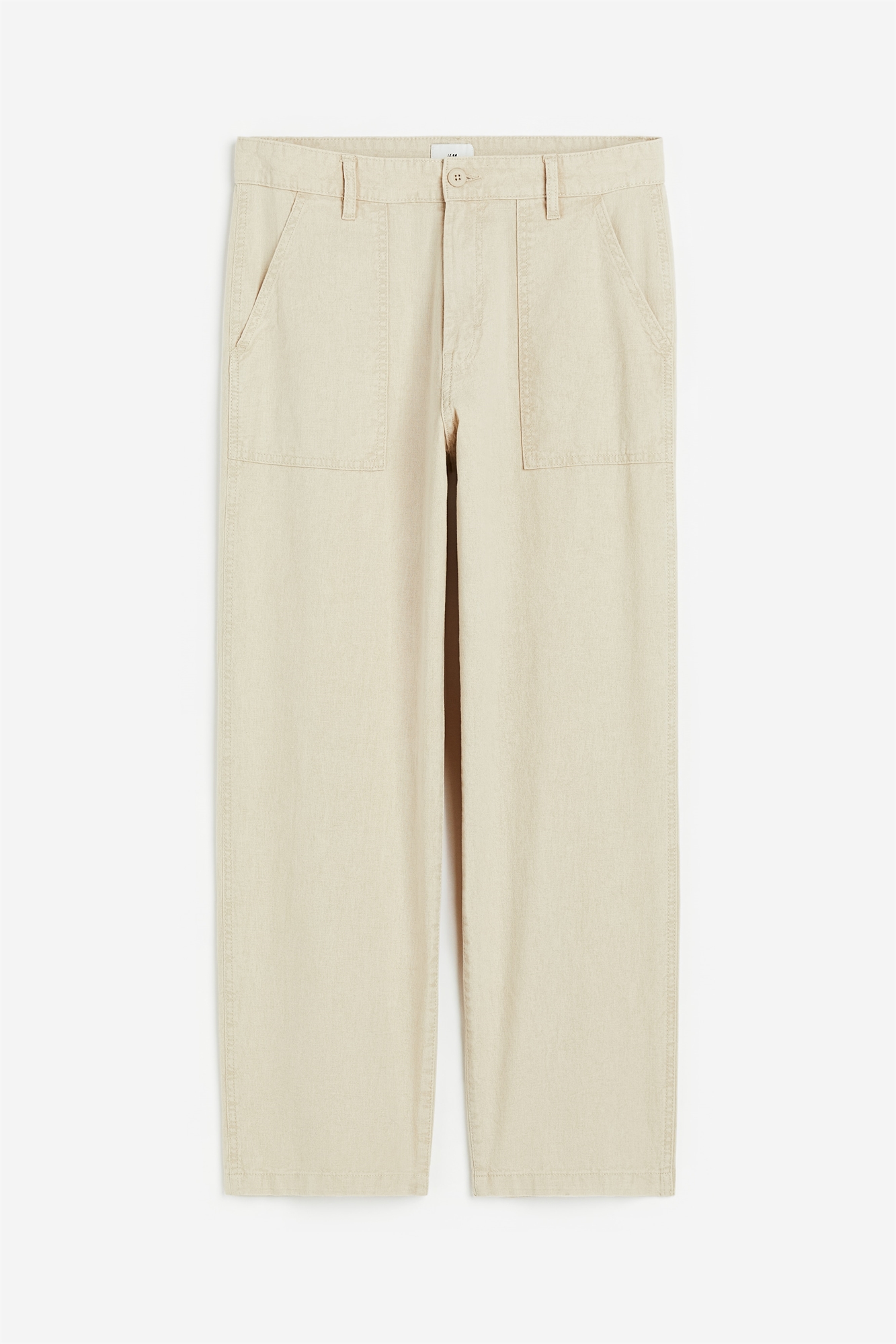 Брюки из смеси хлопка и льна. Ширинка на молнии и пуговице, накладные боковые карманы и накладные карманы на пуговицах сзади. Расслабленный крой. Ткань из смеси хлопка и льна сочетает в себе мягкость хлопка и прочность льна. В результате получается красивая, дышащая ткань с тонкой текстурой и идеальной драпировкой.