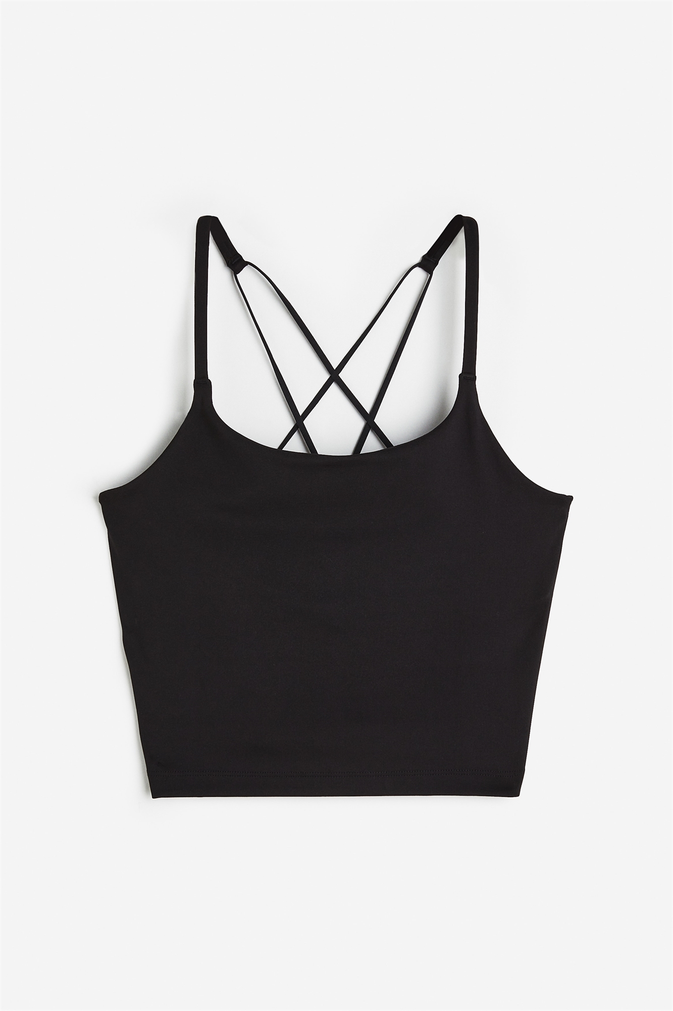 Облегающий спортивный жилет из функциональной ткани DryMove™, которая помогает отводить влагу от кожи, обеспечивая комфортную сухость во время движения. Облегающий крой со встроенным бюстгальтером, узкие бретели спереди и двойные бретели-спагетти, перекрещивающиеся сзади.