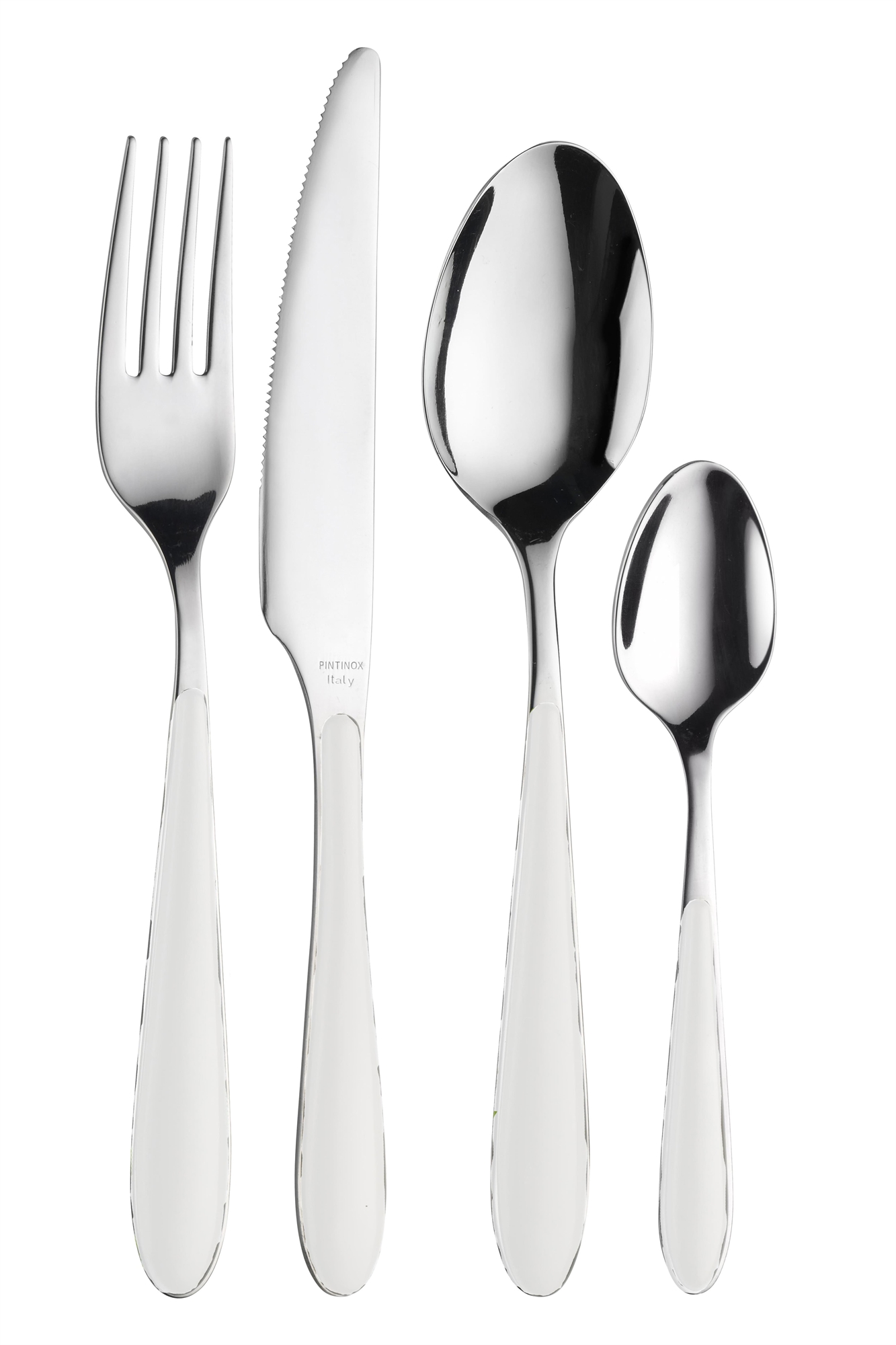 Классическая форма и современные цвета для этой нестареющей итальянской модели. Ручка изготовлена из ABS-пластика. Толщина 2 мм. В набор из 16 предметов входят 4 вилки 19,6 см - 4 ложки 19,6 см - 4 ножа 21,6 см - 4 чайные/кофейные ложки 13,8 см. Он изготовлен из высококачественной нержавеющей стали 18/10. Изделие можно мыть в посудомоечной машине.