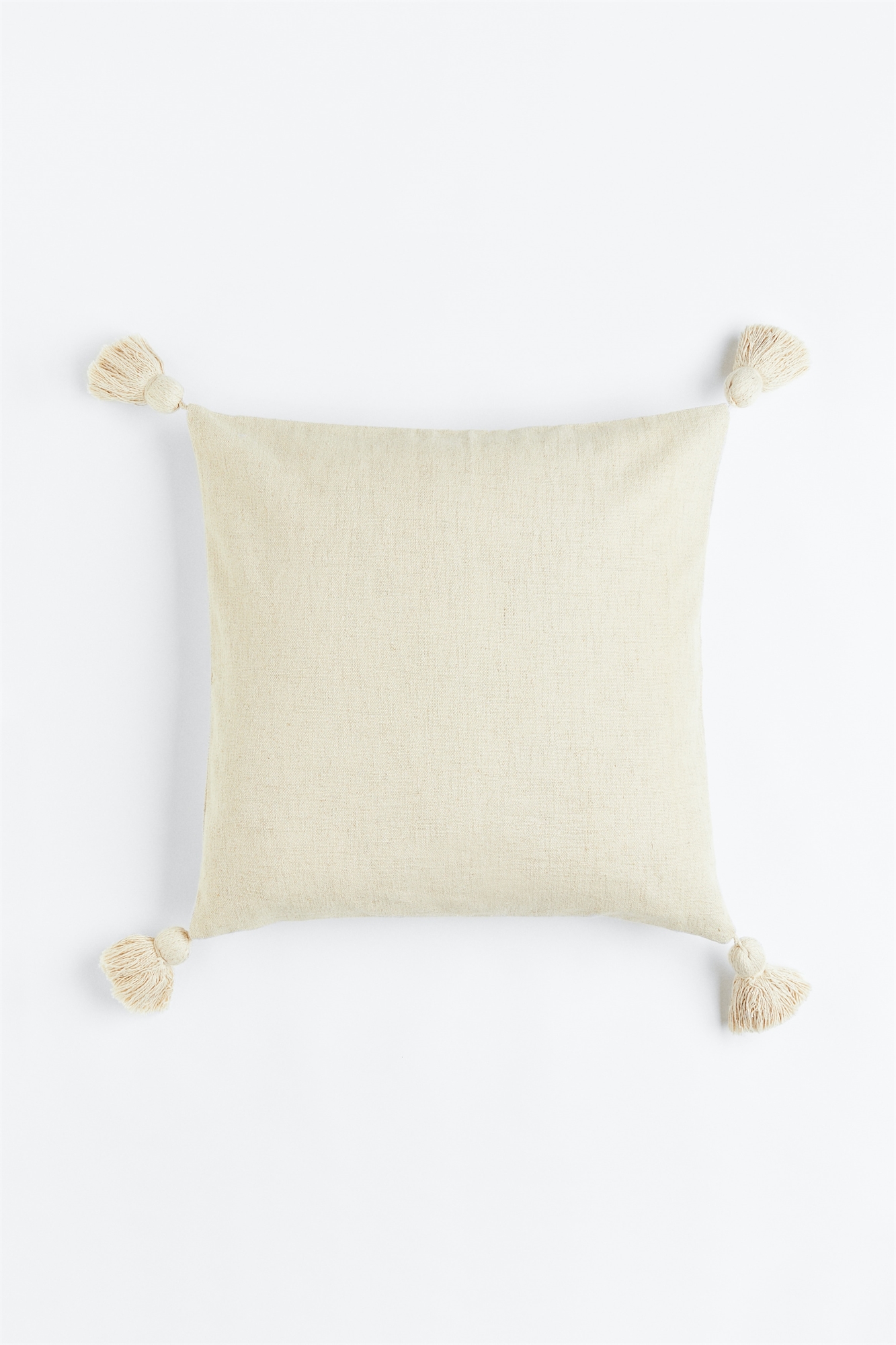 Чехол для подушки из прочного хлопка и вискозы с добавлением льна. Большая кисточка в каждом углу и застежка-молния с одной стороны.