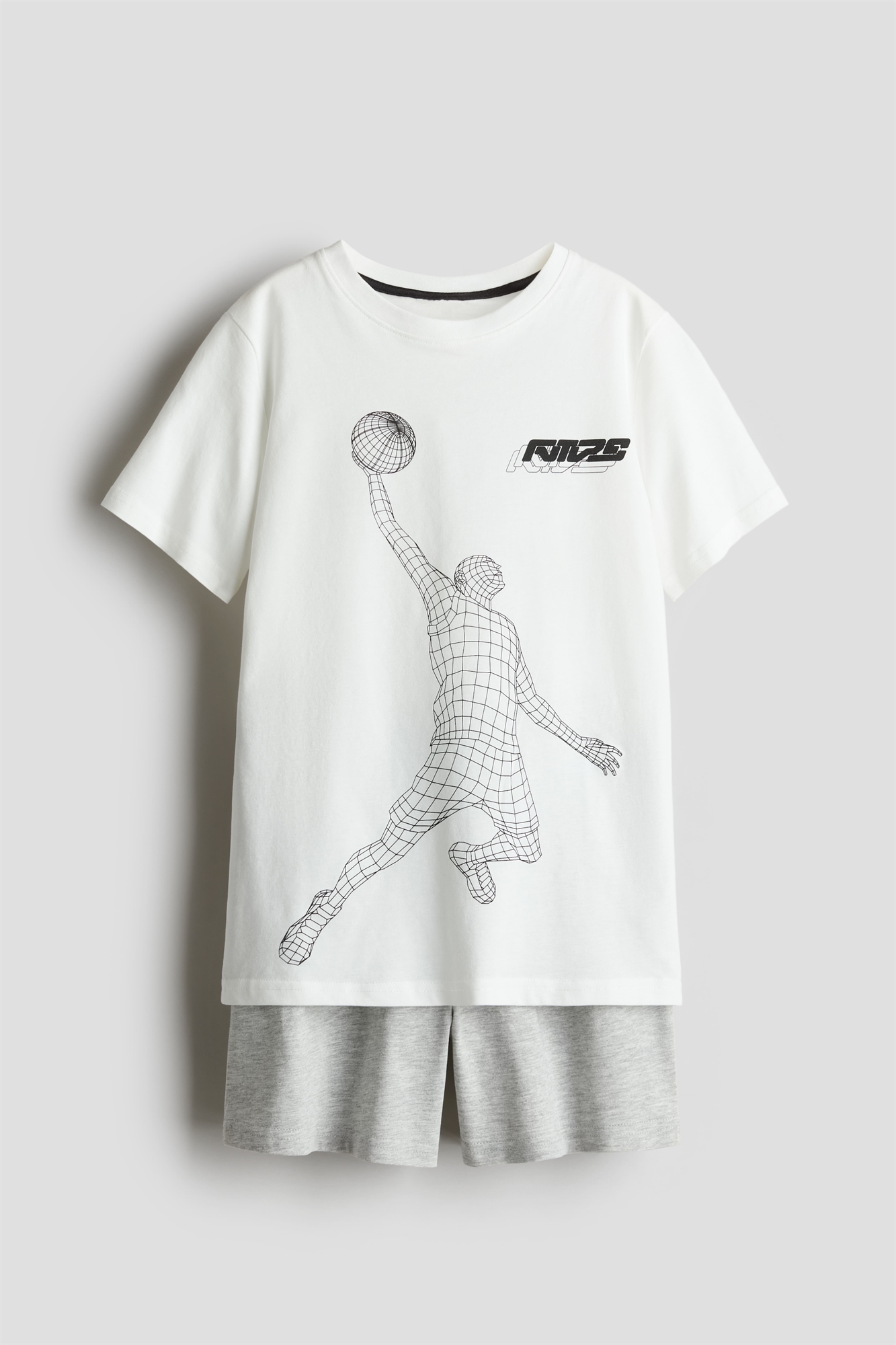Пижама с футболкой и шортами из мягкого хлопкового джерси. Футболка с окантовкой вокруг выреза. Шорты с эластичной талией.