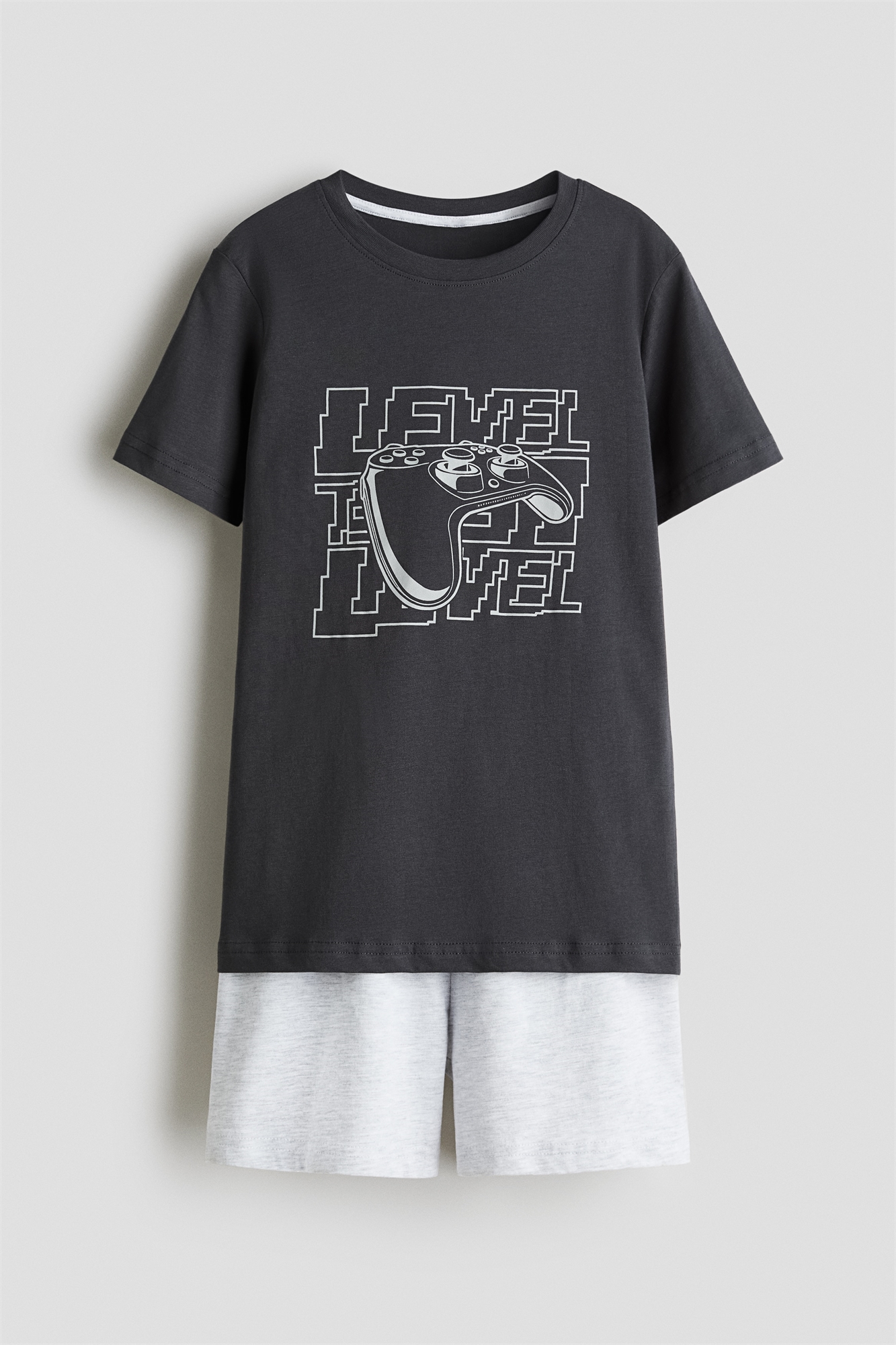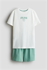Пижама с футболкой и шортами из мягкого хлопкового джерси. Футболка с окантовкой вокруг выреза. Шорты с эластичной талией.