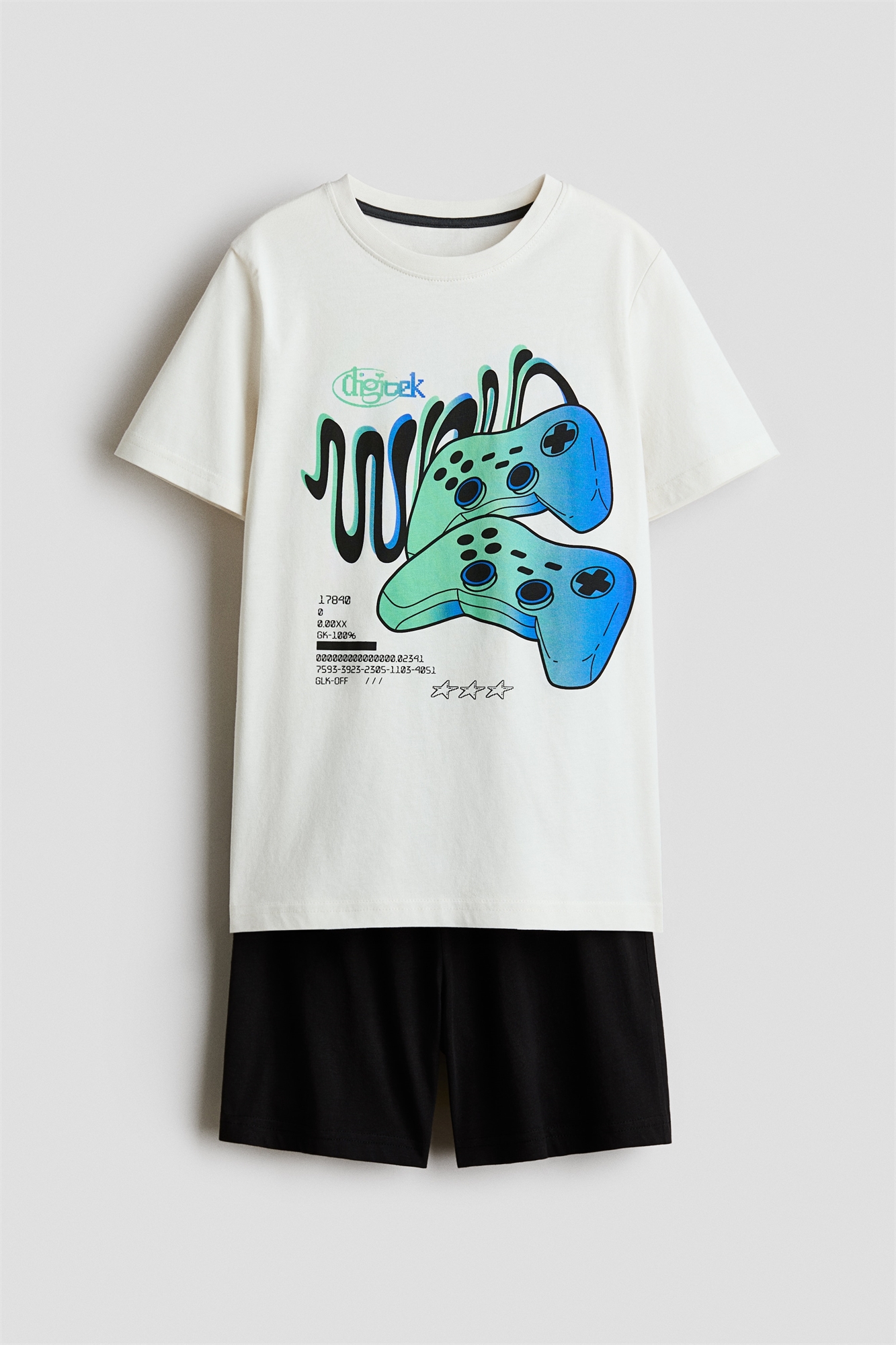 Пижама с футболкой и шортами из мягкого хлопкового джерси. Футболка с окантовкой вокруг выреза. Шорты с эластичной талией.