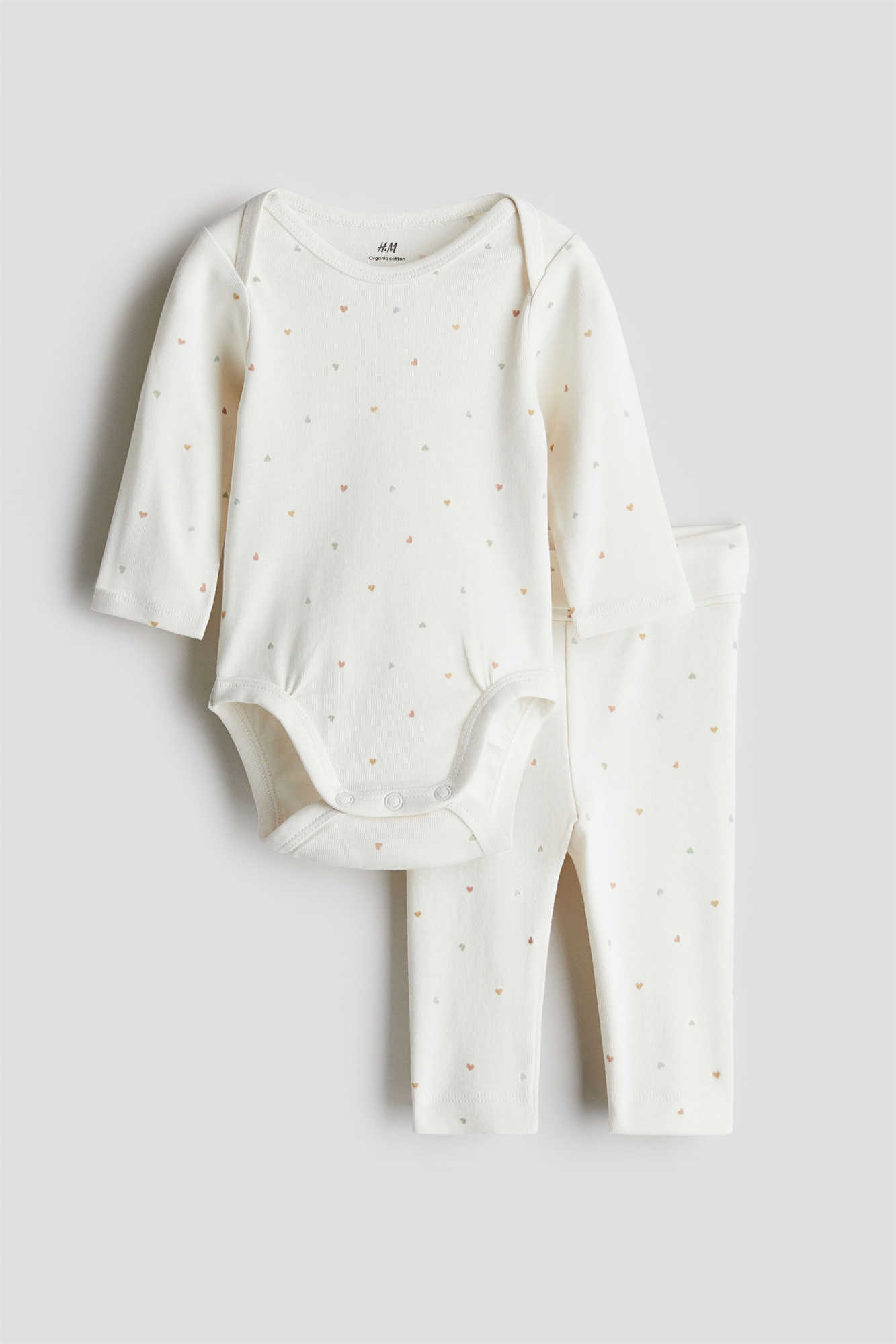 Комплект из комбинезона и леггинсов из супермягкого хлопкового джерси. Боди с длинными рукавами, спущенными плечами, кнопками в промежности и сборчатыми швами вокруг ножек для более удобного и плотного прилегания к подгузнику. Леггинсы с ребристой складкой на талии для удобной посадки на животике.