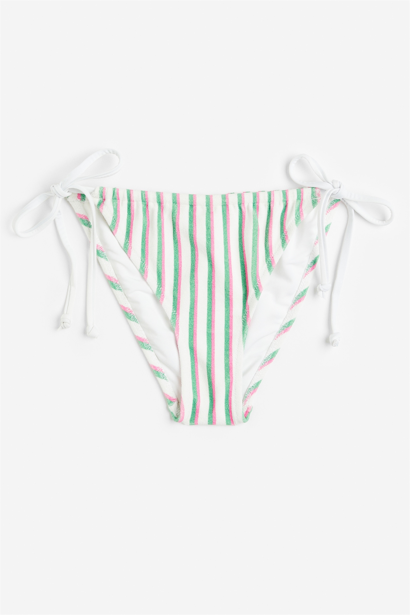 Трусы-бикини на подкладке с заниженной талией, завязками по бокам и вырезом сзади.