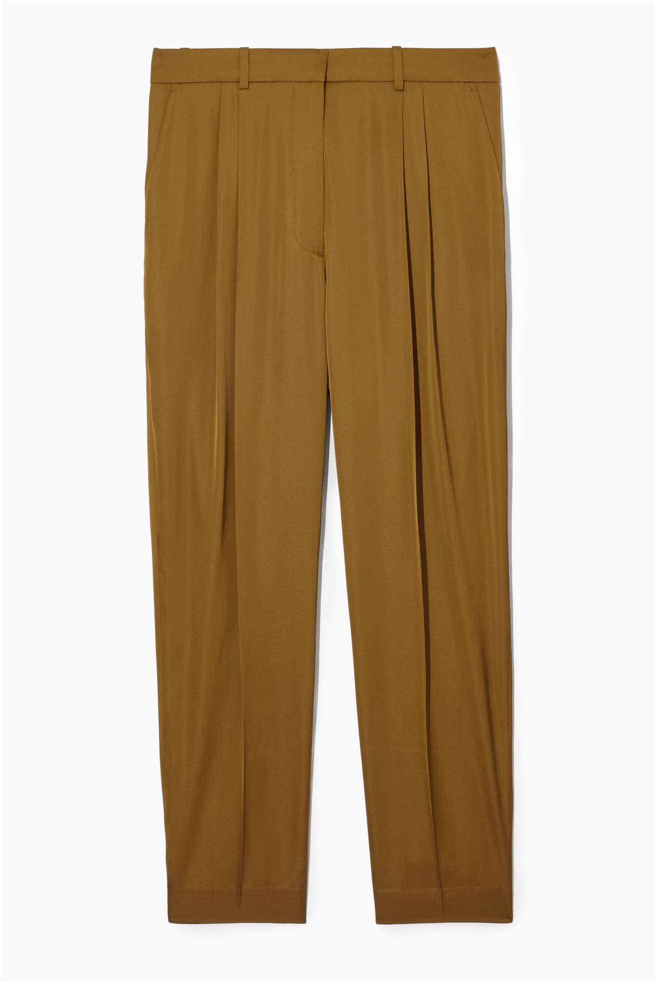 Эти коричневые брюки сшиты из частично переработанного атласа и имеют мягкую форму прямых брючин. Двойные складки спереди и вытачки сзади создают привлекательный силуэт, а боковые накладные карманы и задний накладной карман делают их функциональными. Скрытая регулируемая застежка позволяет подобрать оптимальную посадку. - Regular fit - Застежка на крючок и планку, ширинка на молнии - Лучшая альтернатива обычному полиэстеру, переработанный полиэстер изготовлен из отходов до и после потребления Shell: 54% переработанный полиэстер, 46% ECOVERO™ вискоза. Без учета отделки / Машинная стирка Внутренняя длина штанины размера EU 36 составляет 71,5 см / Модель носит размер EU 36