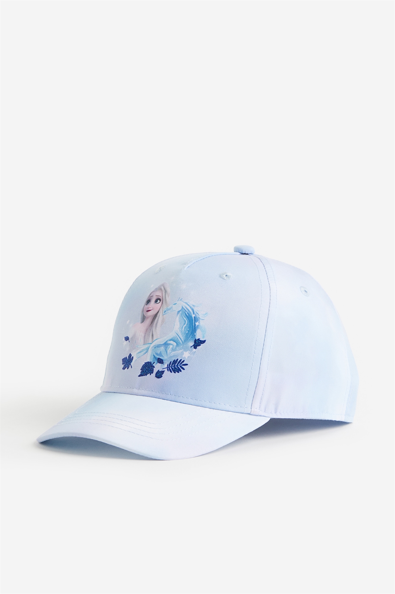 Кепка из набивного тканого материала с закрытой пуговицей на макушке, вышитыми люверсами и регулируемой пластиковой застежкой сзади.
