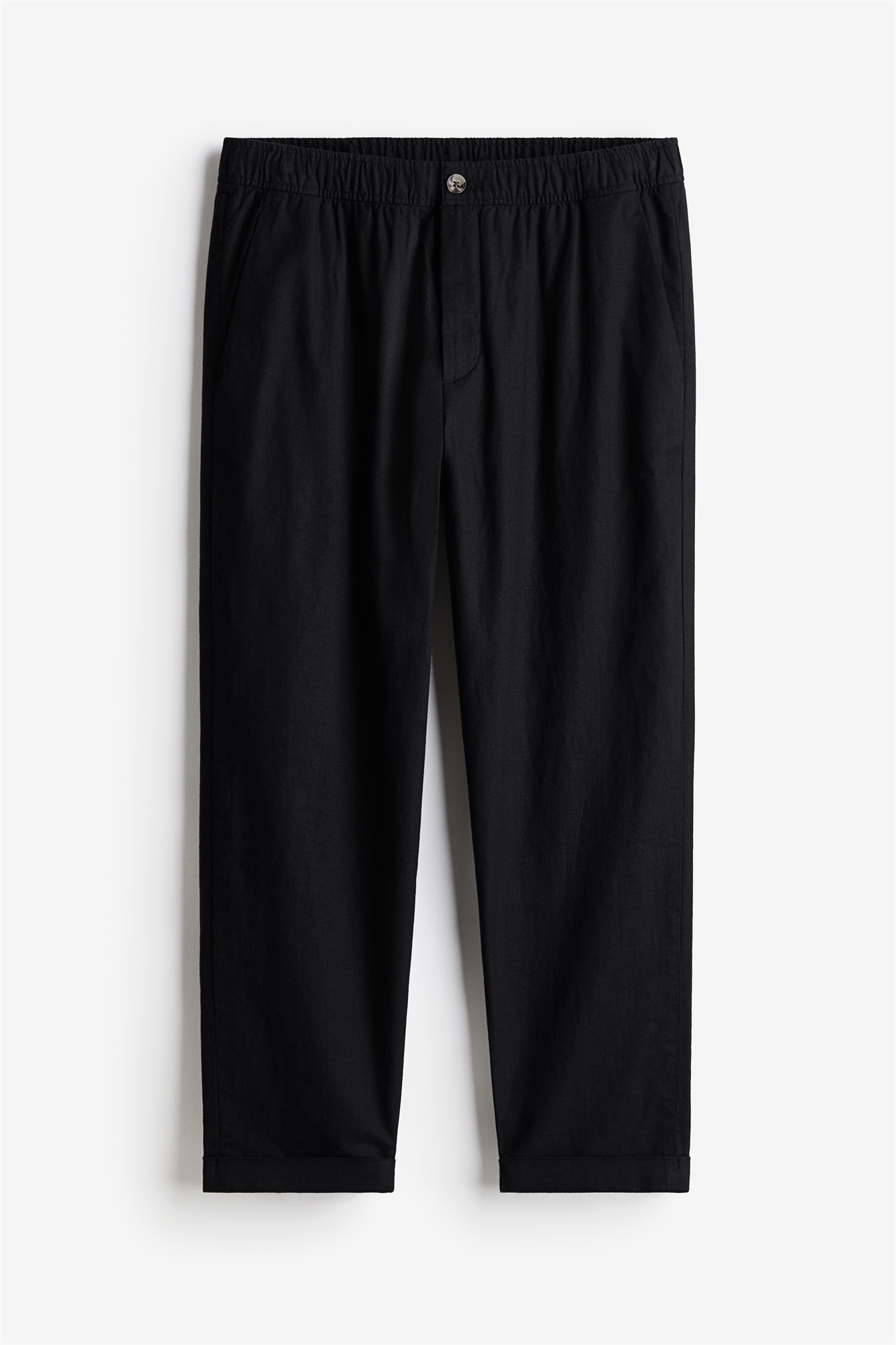 Брюки из воздушного хлопка и льняного полотна с эластичной отделкой и скрытым шнурком на талии. Регулярная посадка, ширинка на молнии и пуговице, неброские боковые карманы и накладные задние карманы на пуговице. Смесь хлопка и льна сочетает в себе мягкость хлопка и прочность льна, создавая красивую, текстурированную ткань, которая хорошо пропускает воздух и прекрасно драпируется.