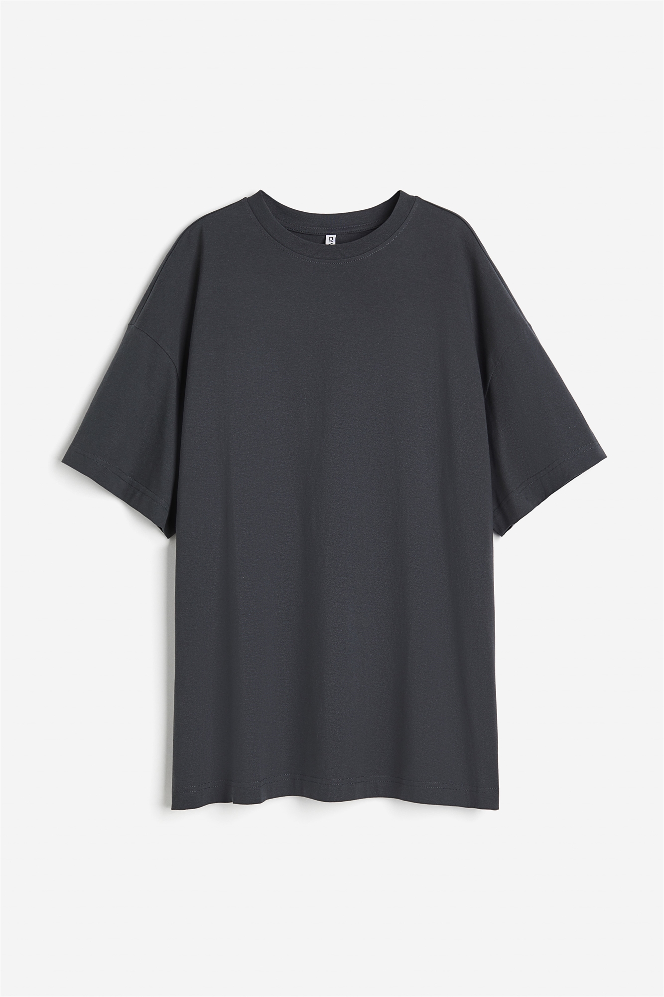 Футболка оверсайз из мягкого хлопкового джерси с ребристой отделкой горловины и низко опущенными плечами.