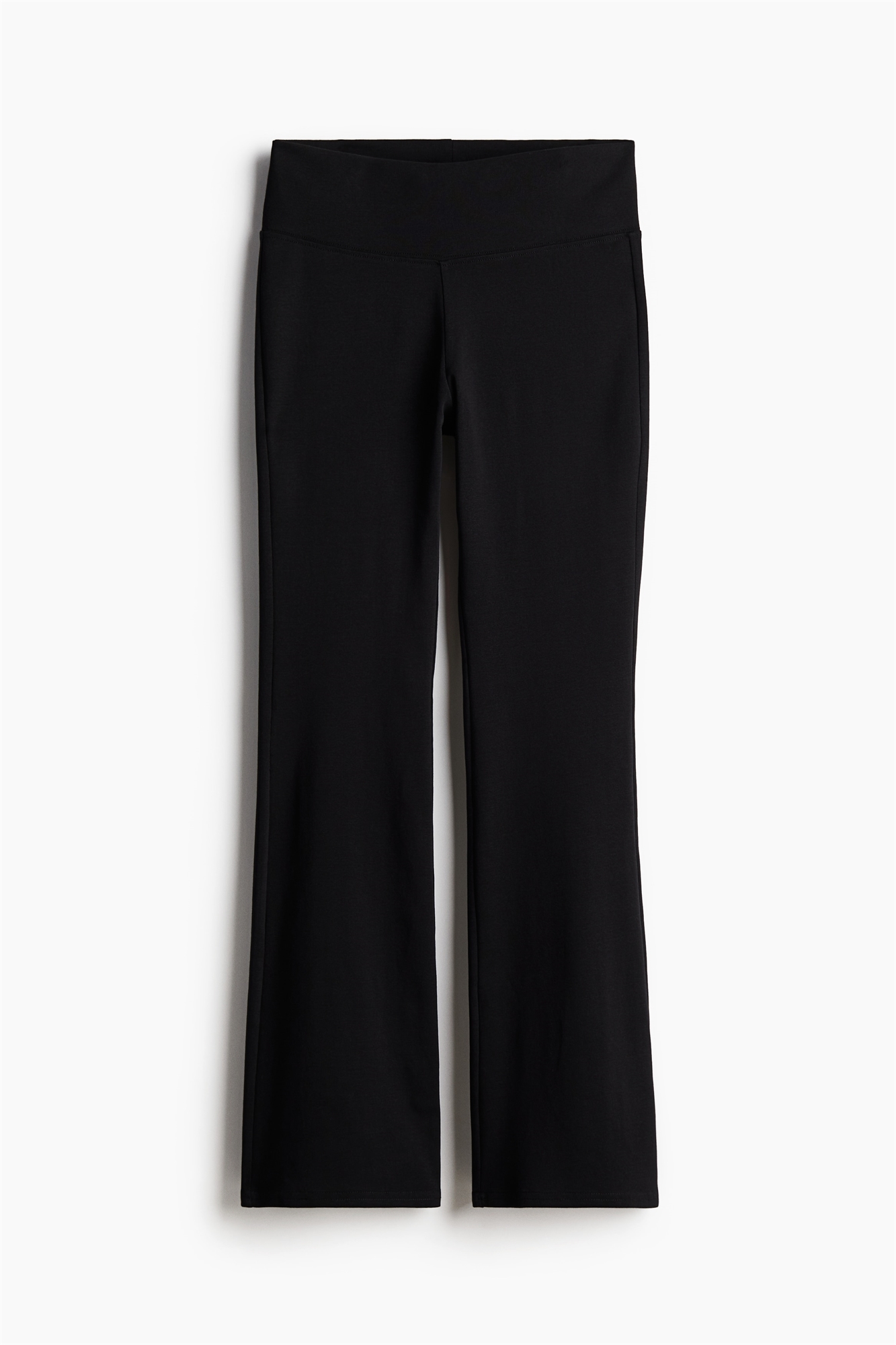 Леггинсы из мягкого трикотажа с широким поясом и расклешенными краями.