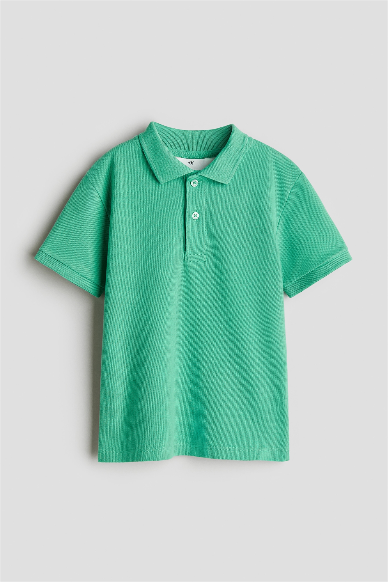 Рубашка-поло из хлопкового пике. Ребристый воротник, застежка на пуговицах и короткие рукава с ребристой отделкой.
