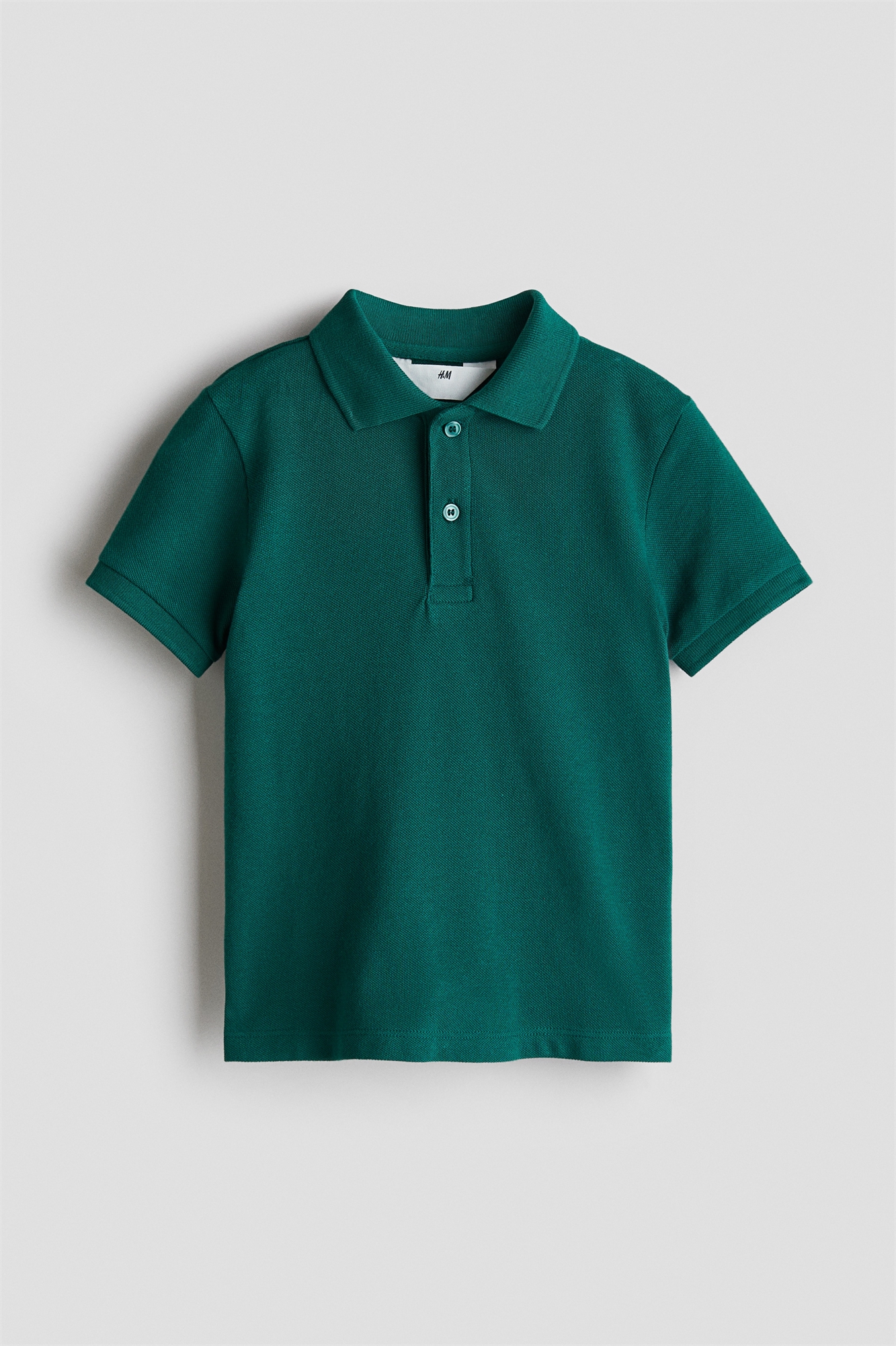 Рубашка-поло из хлопкового пике. Ребристый воротник, застежка на пуговицах и короткие рукава с ребристой отделкой.