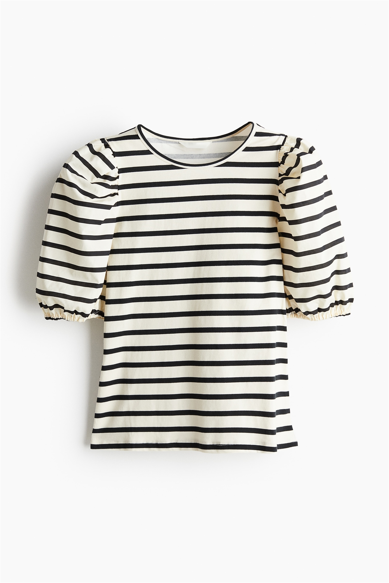 Топ из мягкого хлопкового джерси с круглым вырезом и короткими рукавами из хлопкового поплина с узкими эластичными манжетами.