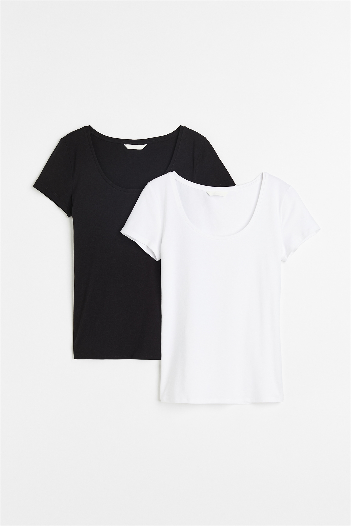 Облегающие топы с короткими рукавами из мягкого хлопкового джерси с глубоким вырезом.