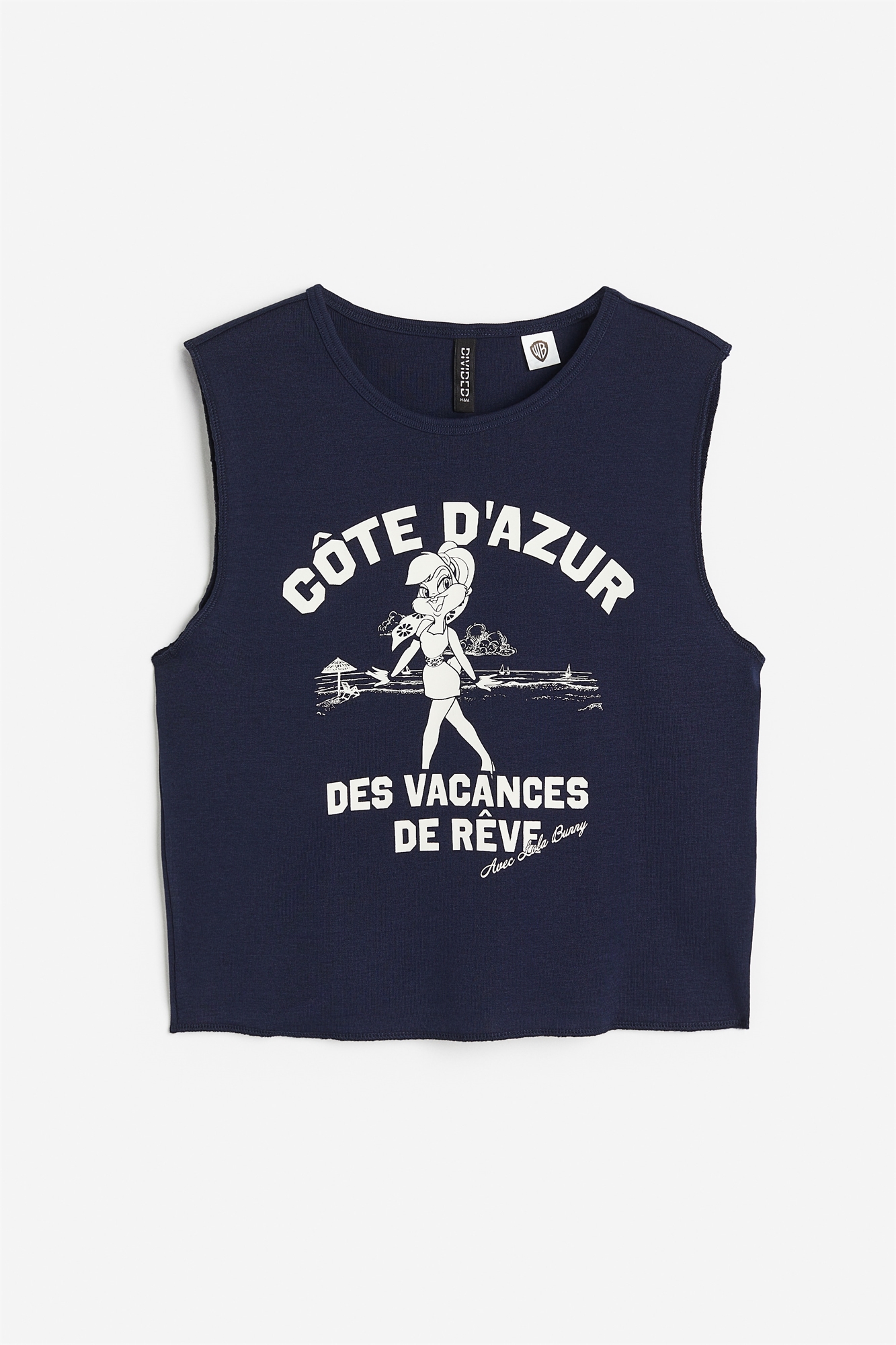 Короткий приталенный жилет из мягкого хлопкового джерси с необработанными краями и принтом спереди.