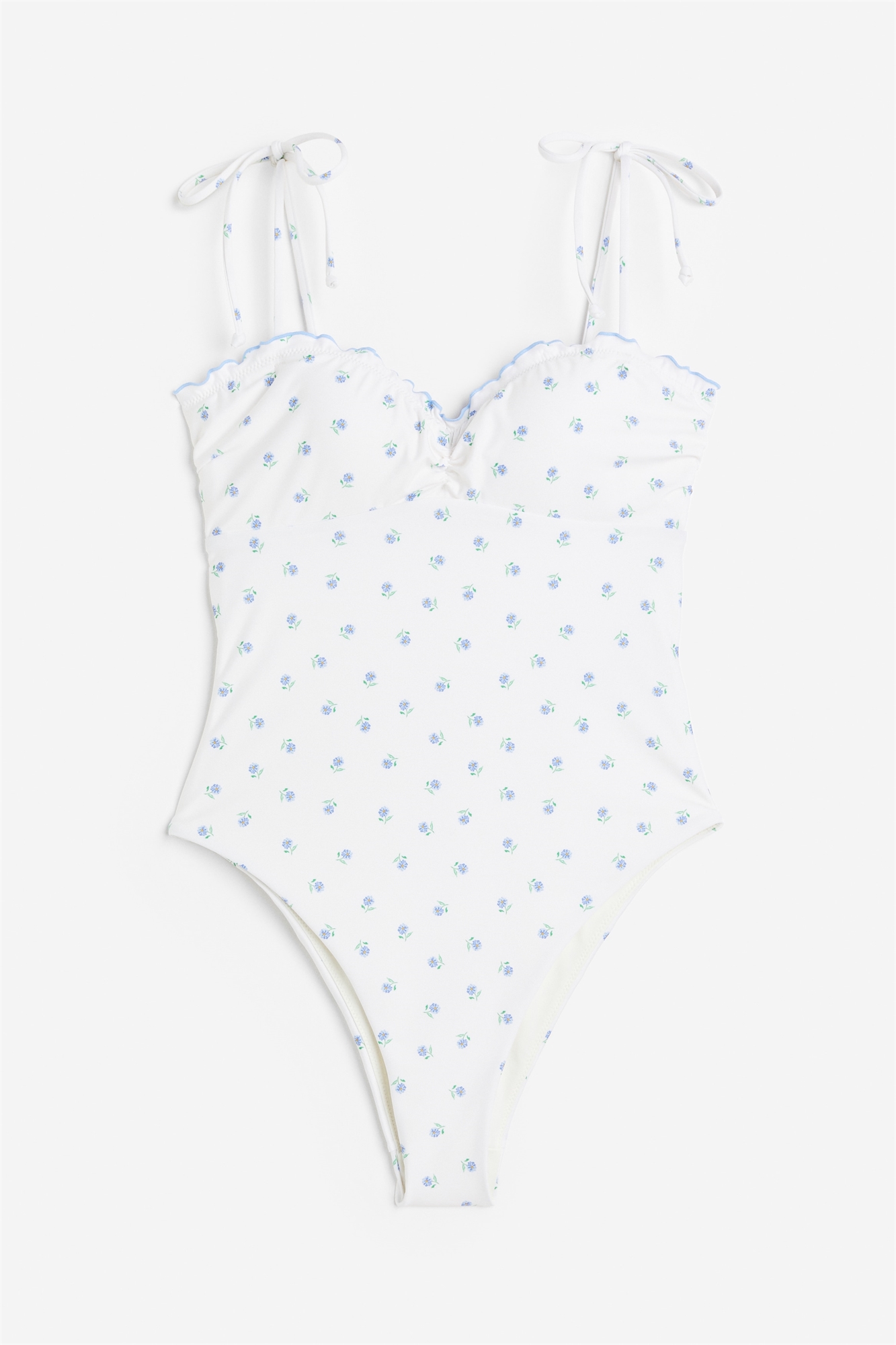 Плавательный костюм на подкладке с вырезом в форме сердца и узкими регулируемыми бретелями. Мягкие чашечки со съемными вкладышами придают груди форму и хорошо поддерживают ее. Высокие вырезы на ногах и среднее покрытие сзади. Ластовица с мягкой подкладкой.