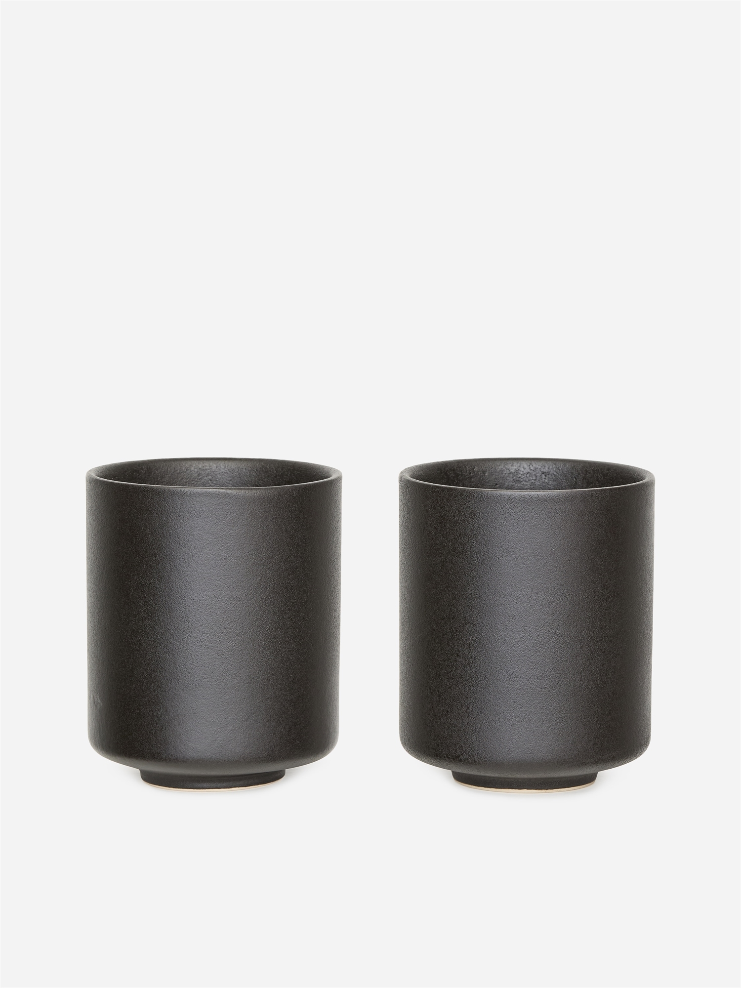 Чашки изготовлены из полностью глазурованной керамики. Каждое изделие имеет уникальную отделку, так как процесс изготовления частично выполняется вручную. Высота 10 см, диаметр 7,7 см. Продается в комплекте из двух штук. Можно мыть в посудомоечной машине.