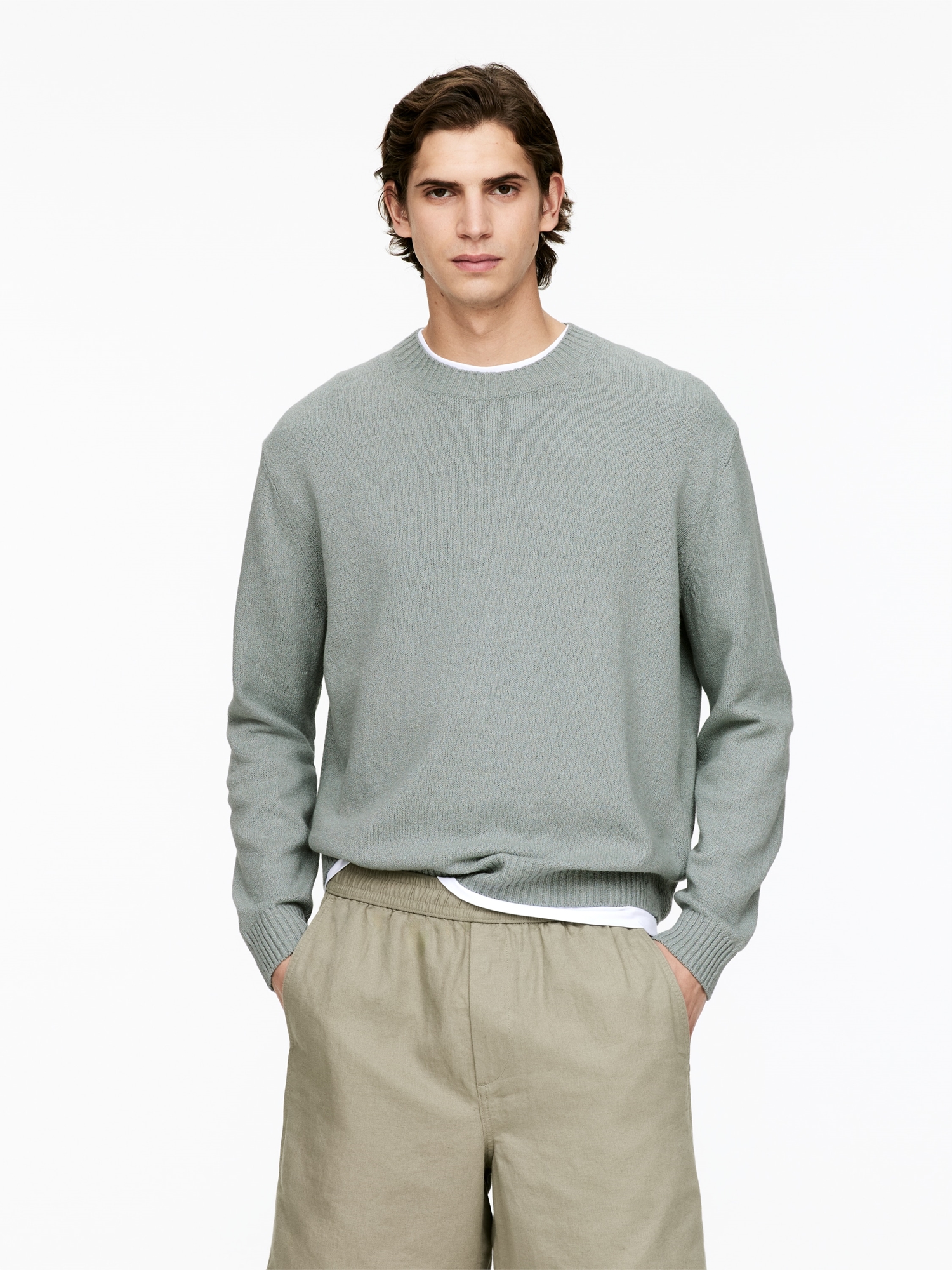 Джемпер с вырезом горловины, слегка спущенными плечами и ребристыми краями на манжетах, горловине и нижней части подола. Изготовлен из роскошной смеси хлопка, полиэстера, льна и шелка тутового дерева.