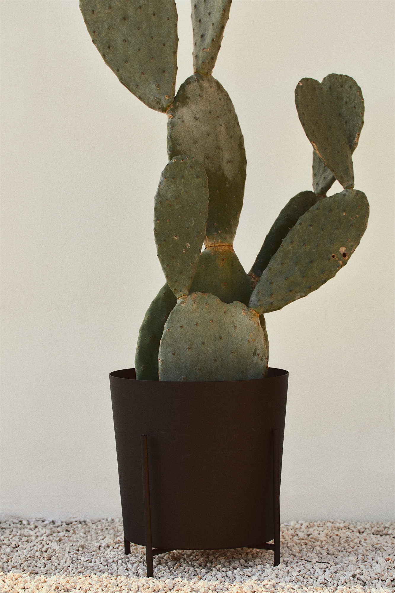 Очень большой горшок для растений из окрашенного металла на подставке, которую можно использовать двумя способами, чтобы варьировать высоту горшечных растений. Подходит для использования как в помещении, так и на улице. Высота горшка 27 см. Диаметр 29 см.