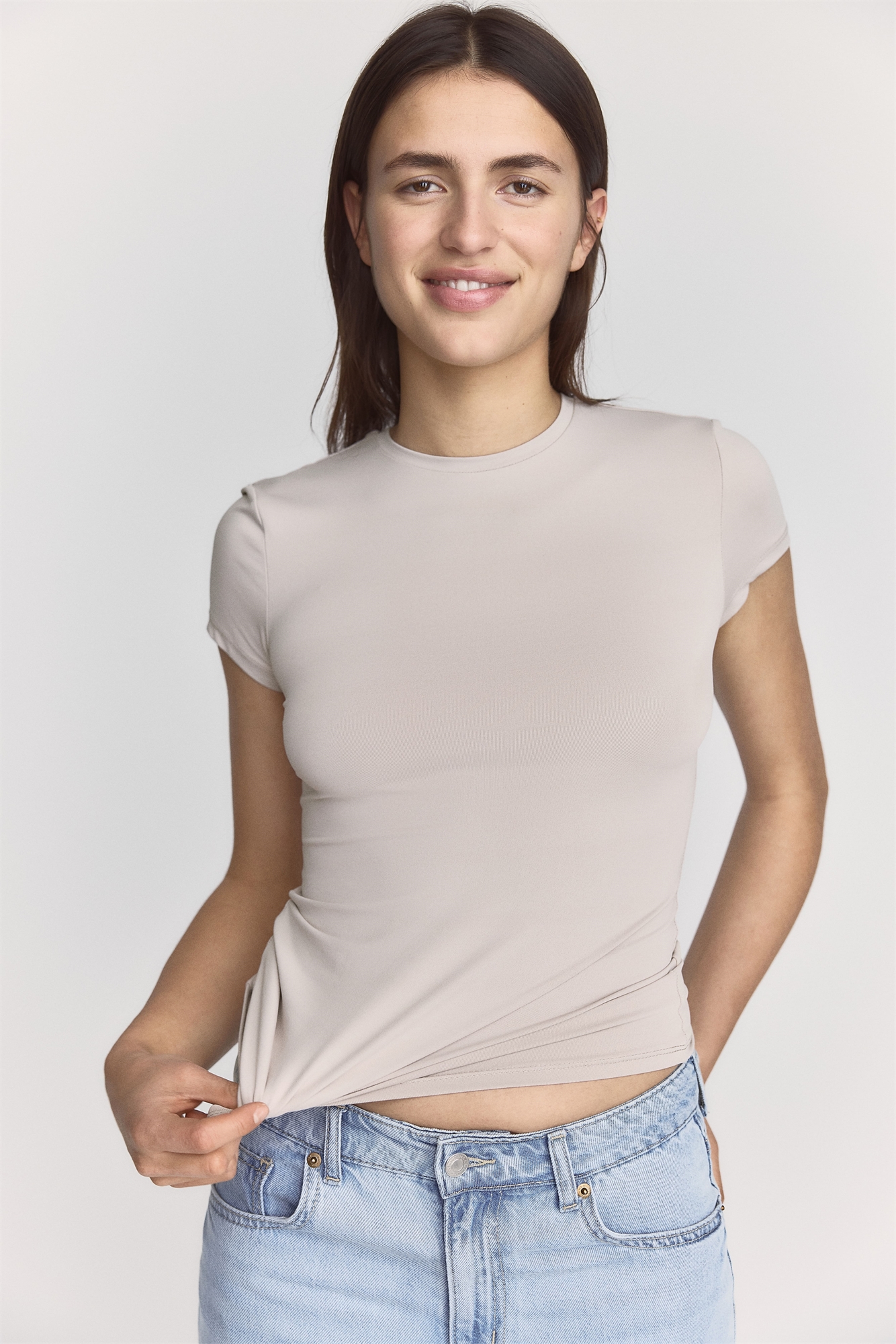 Облегающая футболка из микрофибры с узкой окантовкой по вырезу горловины.
