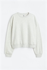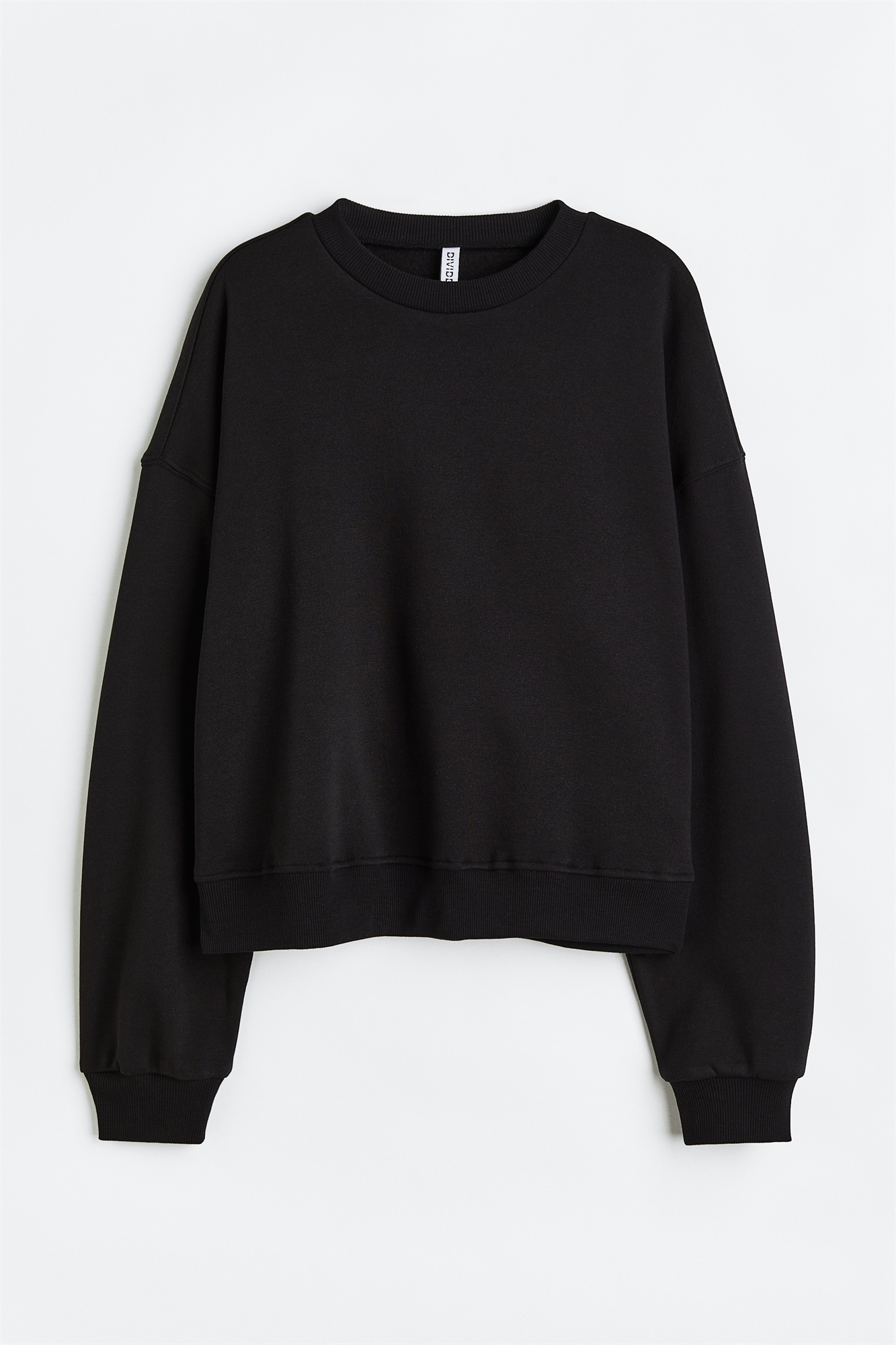 Топ в виде толстовки из хлопковой смеси с мягкой начесом внутри. Круглый вырез в рубчик, спущенные плечи, длинные рукава, манжеты и подол в рубчик.