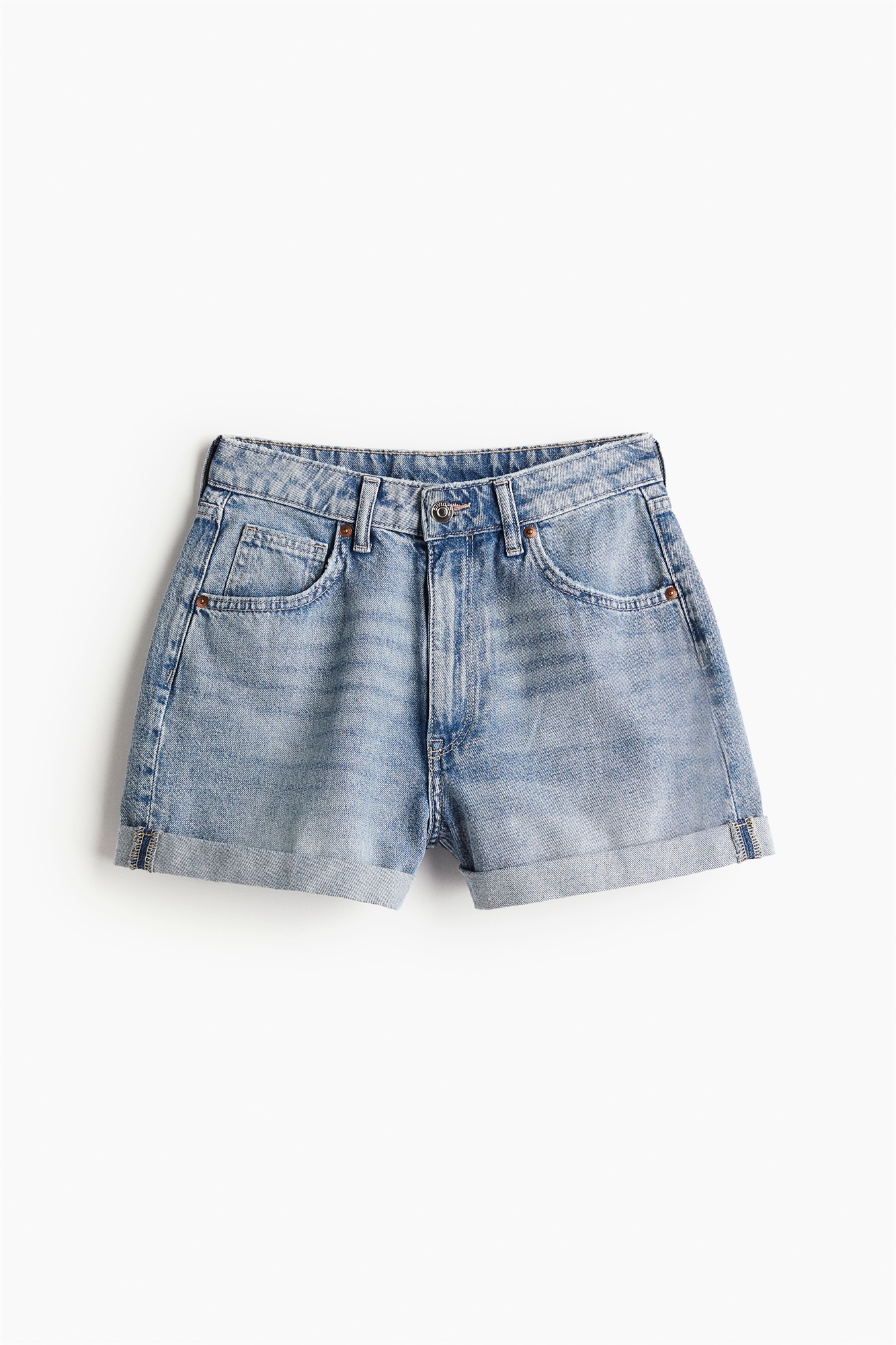 Шорты с 5 карманами из прочного хлопкового денима с высокой талией и ширинкой на молнии и пуговице.