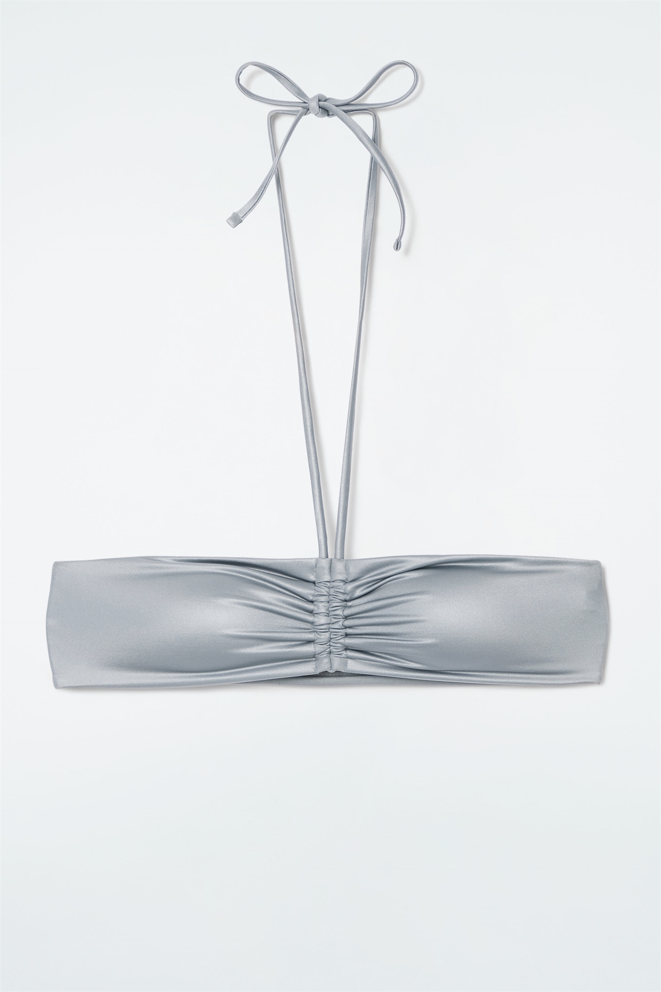 Этот бикини серебристого цвета изготовлен из эластичного переработанного материала с мерцающим металлическим блеском. Он имеет силуэт бандо, нежный вырез в форме сердца и слегка мягкие чашечки для дополнительной поддержки. Дополните наряд подходящими по цвету трусиками-бикини. Завязки сзади на шее Благодаря использованию переработанного нейлона мы сокращаем использование ограниченных природных ресурсов и уменьшаем выбросы парниковых газов Внешняя ткань: 39% полиэстер, 31% переработанный полиамид (переработанный нейлон), 30% переработанный эластан, Подкладка: 84% переработанный полиамид (переработанный нейлон), 16% LYCRA® эластан. Детали исключены/Машинная стирка Длина по спинке в размере S = 7 см/Модель носит размер S