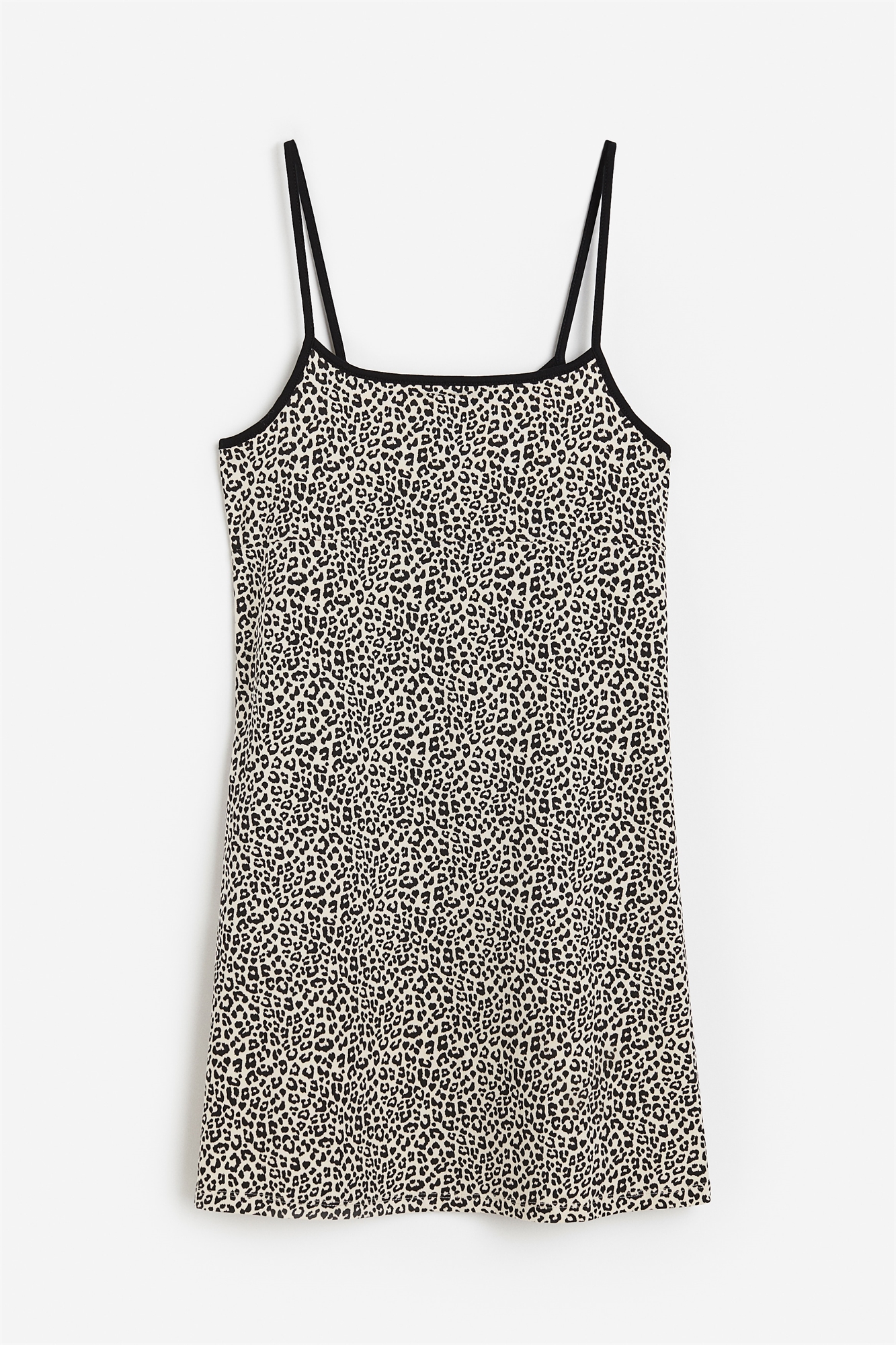 Короткое платье из мягкого хлопкового джерси с квадратным вырезом и узкими бретелями. Приталенный лиф, шов на талии и юбка А-линии.