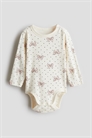 Боди с длинными рукавами из супермягкого хлопкового джерси со скрытой застежкой на одном плече. Застежки в промежности и сборчатые швы вокруг ножек для более удобного и плотного прилегания к подгузнику.