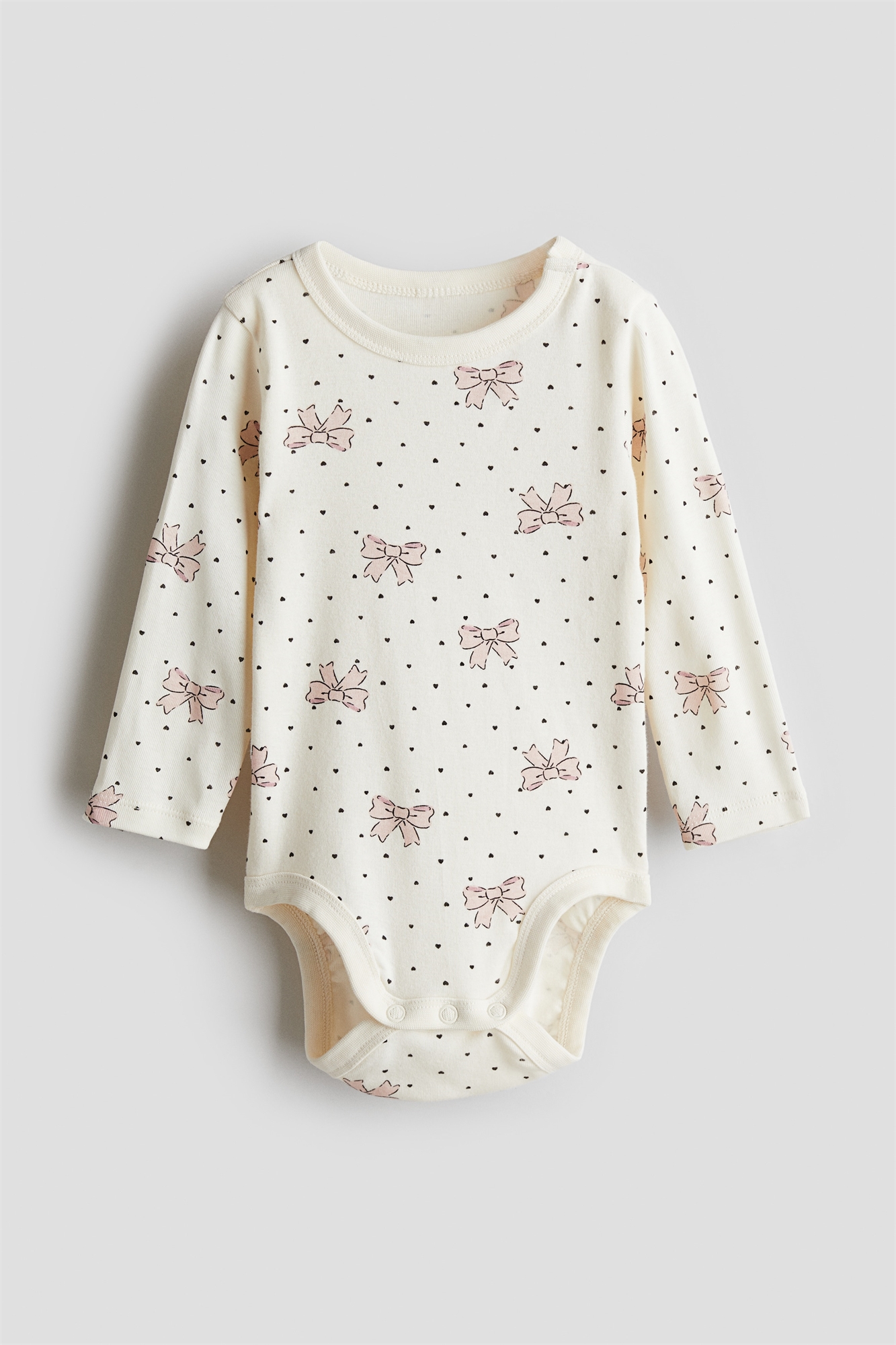 Боди с длинными рукавами из супермягкого хлопкового джерси со скрытой застежкой на одном плече. Застежки в промежности и сборчатые швы вокруг ножек для более удобного и плотного прилегания к подгузнику.