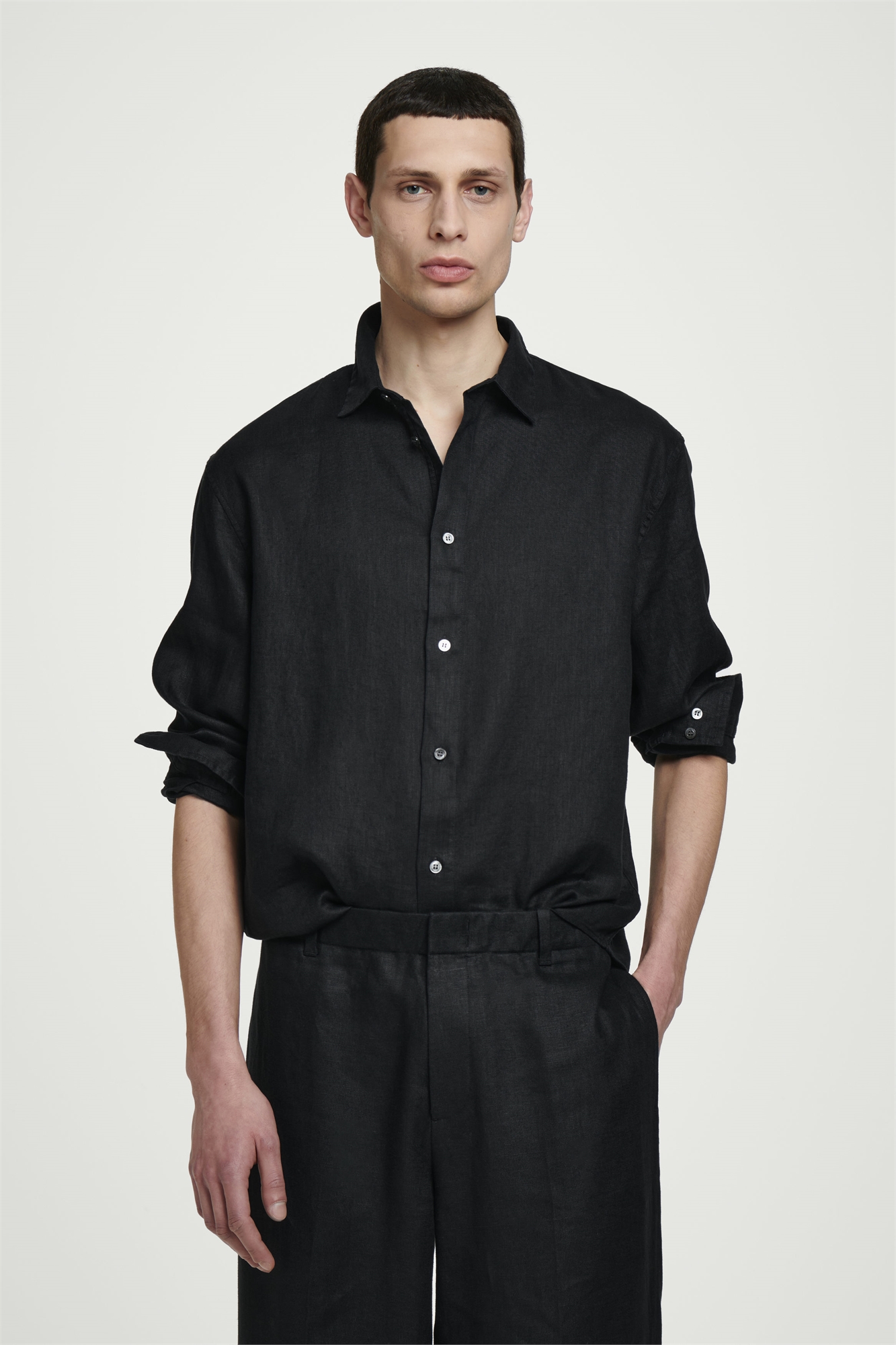 Льняная рубашка с длинными рукавами
