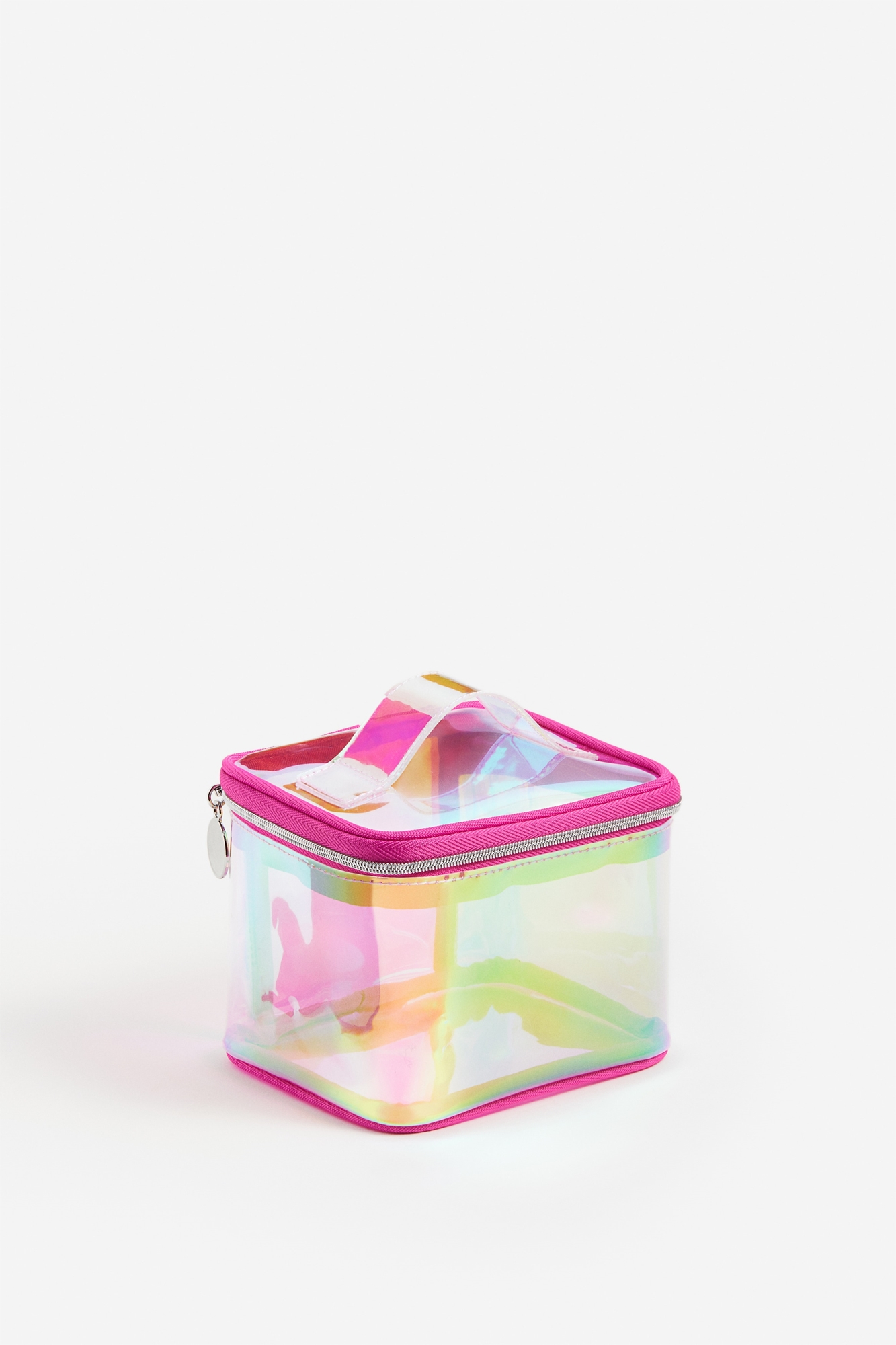 Лимитированная серия. Вместительная косметичка-бокс из прозрачного материала с голографической отделкой. Крышка на молнии по всему периметру и ручка сверху. Высота 10 см. Ширина 13 см. Глубина 10 см.