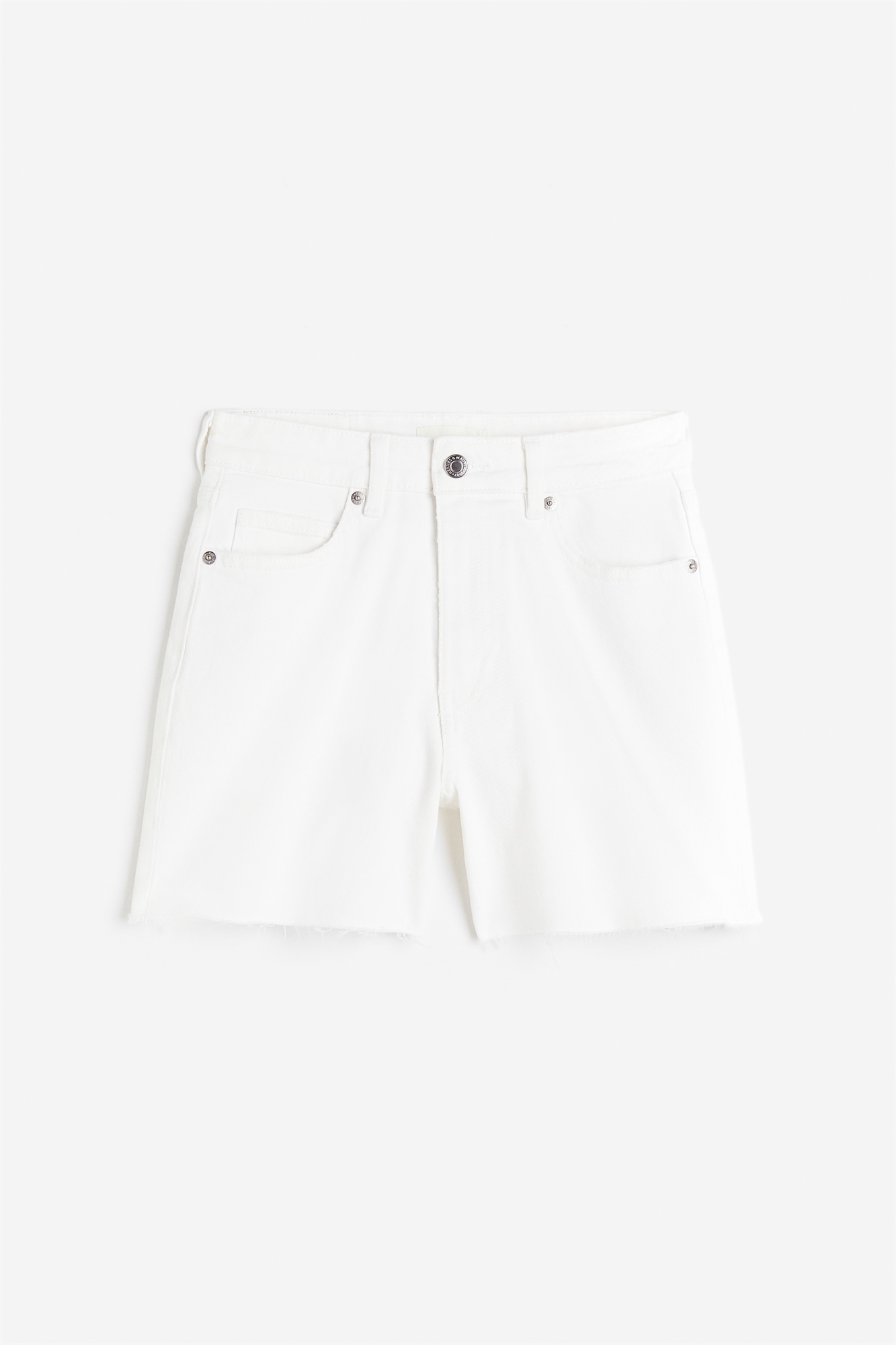 Шорты с 5 карманами из слегка тянущегося денима с высокой талией, ширинкой на молнии и пуговице и необработанными краями.
