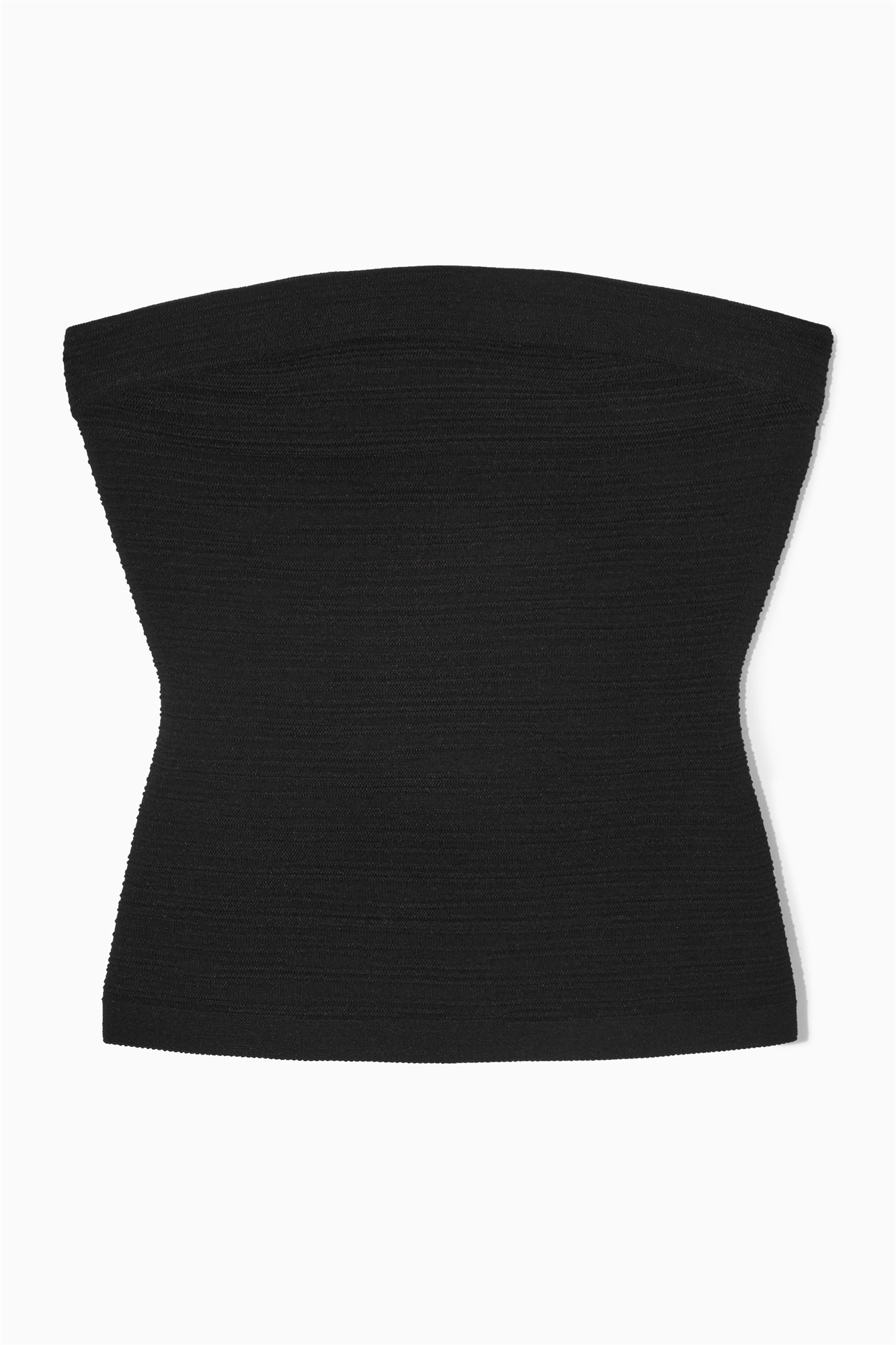 Этот нестареющий черный топ-бандо станет достойным дополнением вашего гардероба - он не только универсален, но и более элегантен, чем классические майки и футболки. Вязаная из пружинистого материала, эта вещь без рукавов имеет текстуру по всей поверхности, которая поддерживает тонко изогнутый вырез на месте. Носите его как коорд с подходящей юбкой. Переработанный нейлон (полиамид) снижает потребность в ограниченных природных ресурсах и сокращает выбросы парниковых газов Материал: 65% вискоза, 35% переработанный полиамид. Без учета отделки / Машинная стирка в холодном состоянии Длина по спинке для размера S составляет 34 см / Модель носит размер M