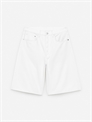 Джинсовые шорты с высокой талией и свободным кроем. Классический 5-карманный фасон с ширинкой на пуговицах. Изготовлены из смеси хлопка и лиоцелла. Внутренняя длина штанины 30 см (размер 28).