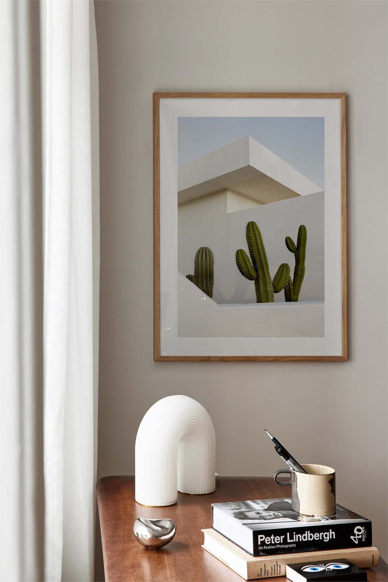Откройте для себя этот принт с изображением зеленых кактусов и красивого фасада белого дома на фоне голубого неба. Привнесите Средиземноморье в свой интерьер, добавив постеры в теплых нейтральных тонах. Фаворит Postery! Постер "Дом с кактусами" имеет встроенную белую рамку, которая элегантно обрамляет мотив.