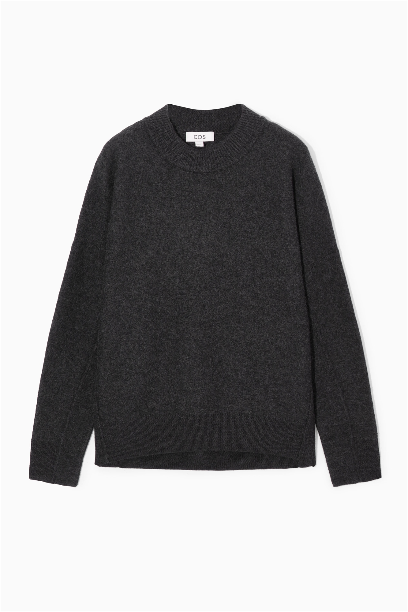 Этот джемпер угольно-серых тонов - основная вещь для прохладных месяцев. Его облегающий силуэт и спущенные плечи придают ему мягкость. Детали боковых швов придают мягкую структуру, а шерсть, сертифицированная RWS, согреет вас. Свободный крой Ребристая отделка Сертифицировано в соответствии со стандартом ответственной шерсти для защиты благополучия овец и окружающей среды 100% шерсть RWS / Сухая чистка Длина по спине для размера S составляет 66 см / Модель носит размер S