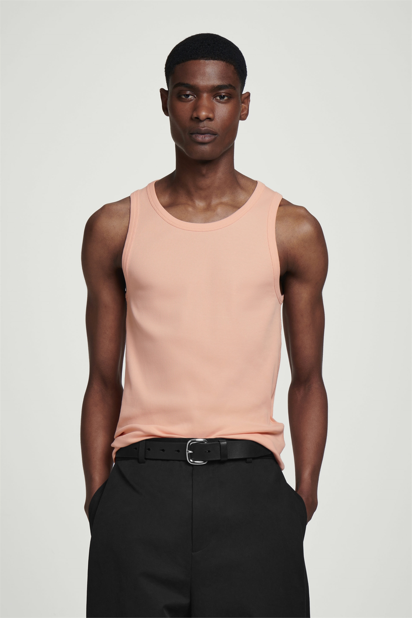 Эта ребристая майка - идеальная базовая вещь, которую можно носить самостоятельно или надевать под рубашки и кардиганы. Она сшита из мягкого джерси на основе органического хлопка, имеет облегающий крой, горловину и широкие проймы для комфорта. Regular fitОрганический хлопок выращен из негенетически модифицированных семян без использования химических удобрений и пестицидов Состав: 70% органический хлопок, 25% переработанный хлопок, 5% эластан. Без учета отделки / Машинная стирка Длина по спинке для размера M составляет 69,6 см / Модель носит размер M