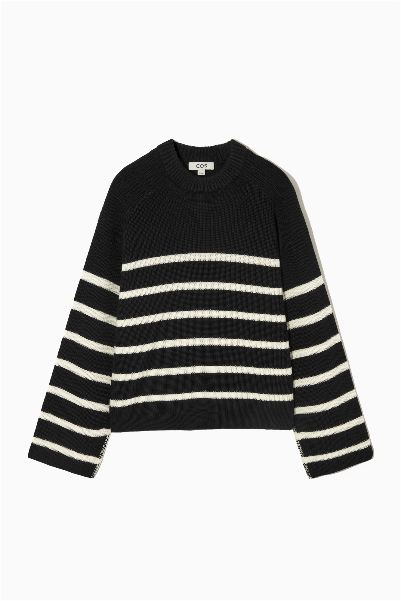 Этот слегка укороченный вязаный джемпер изготовлен из смеси мериносовой шерсти, сертифицированной по стандарту Responsible Wool Standard. Он украшен контрастными горизонтальными полосками и длинными стежками в подмышечных и боковых швах. Привлекающий внимание круглый вырез придает изделию структурность, а рукава реглан - свободный силуэт. - Regular fit - Длинные рукава 64 % мериносовой шерсти RWS, 36 % хлопка/Машинная стирка Длина по спинке в размере S = 55 см/Модель носит размер S