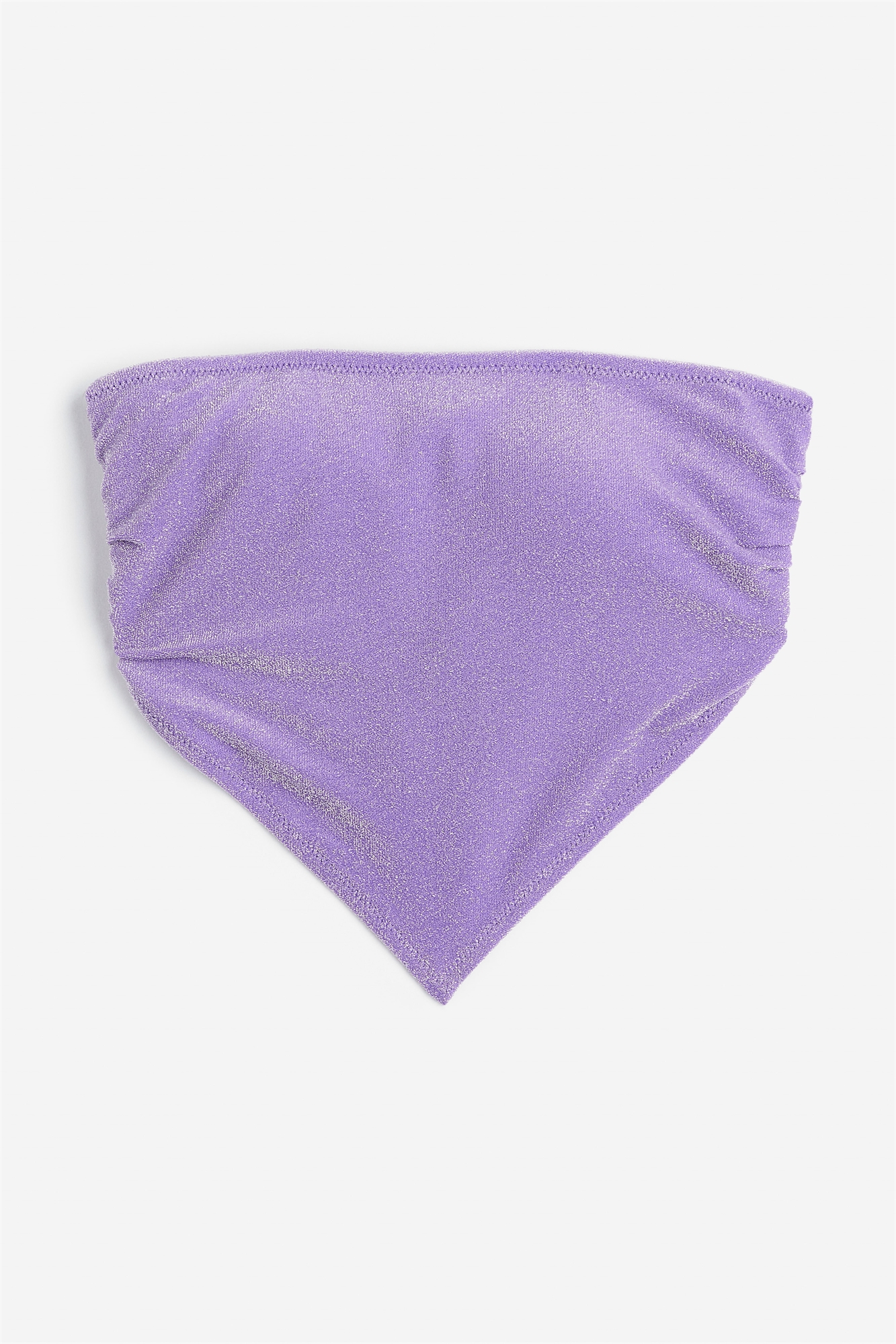 Бикини-бандо на подкладке с боковой поддержкой. Чашечки со съемными вставками, придающими форму бюсту и обеспечивающими хорошую поддержку. Завязки сзади.