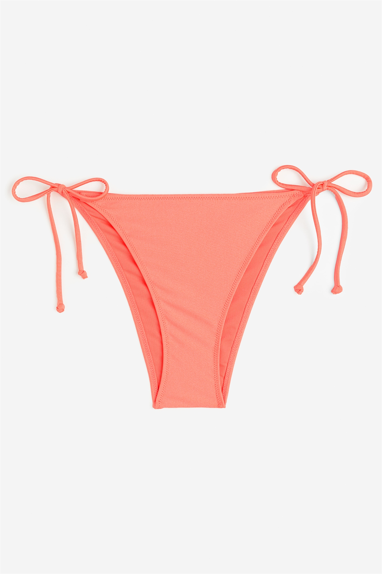 Трусики-бикини на подкладке, со средней талией, завязками по бокам и вырезом сзади.