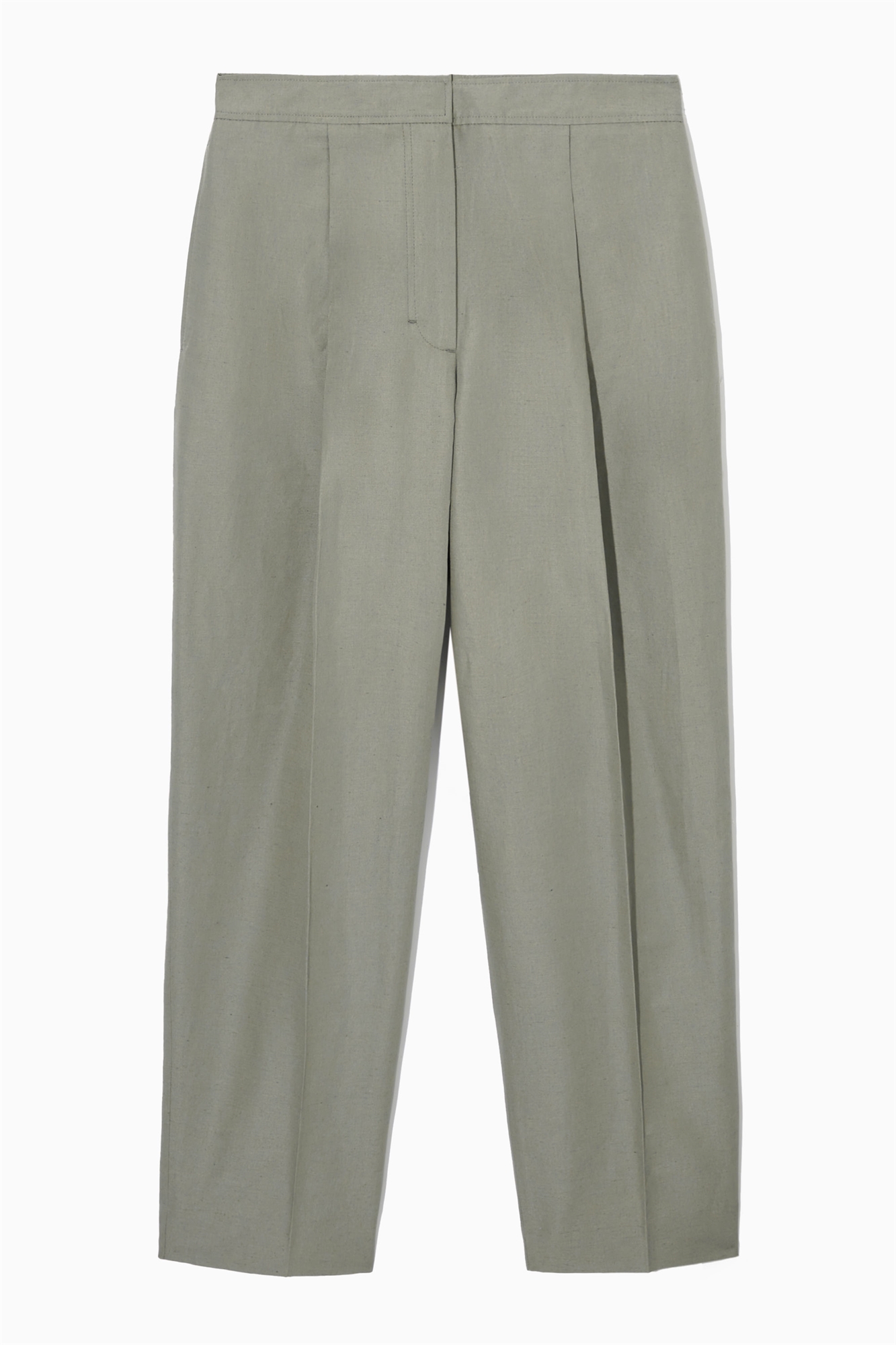 Чиносы COS станут отличным дополнением к вашему летнему гардеробу. Созданные из смеси льна и хлопка, они имеют универсальный серый оттенок и слегка зауженные ножки, которые находятся чуть выше лодыжки. В их дизайне прослеживаются нотки портновского искусства, например, прорезные карманы и аккуратные центральные складки. Носите их с кожаной курткой и туфлями на каблуках. - Regular fit - Застежка на крючок - Карманы в боковых швах, задний карман 52% льна, 48% хлопка / Машинная стирка Внутренняя длина штанины размера EU 36 составляет 66,5 см / Модель носит размер EU 36